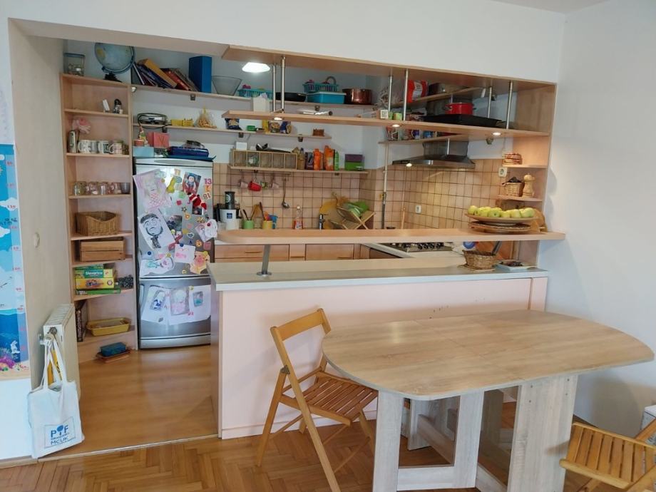 Stan se sastoji iz predsoblja, velikog open space dnevnog boravka s kuhinjom i blagovaonicom s izlazom na lođu,