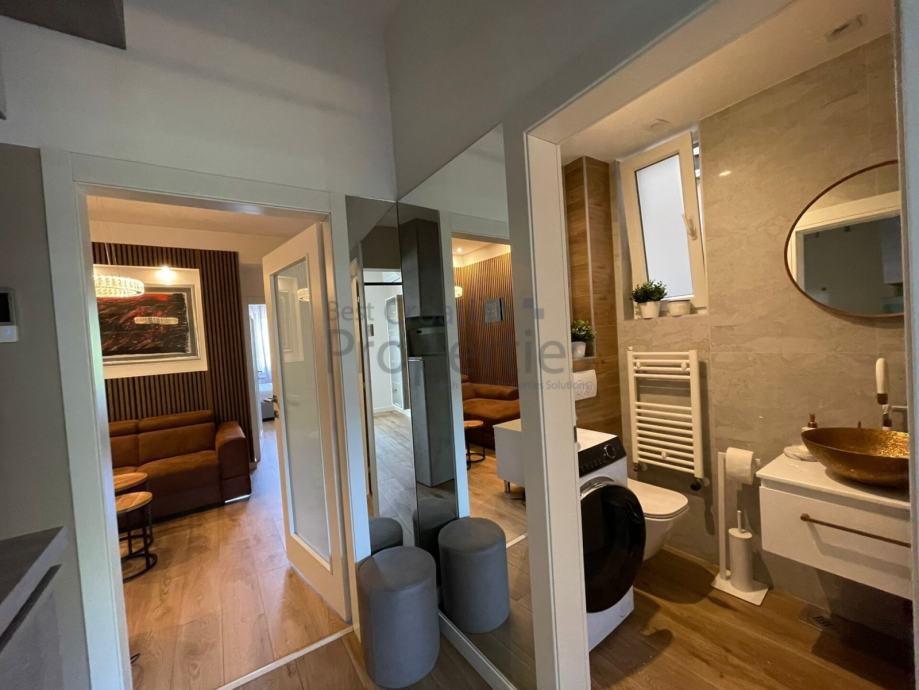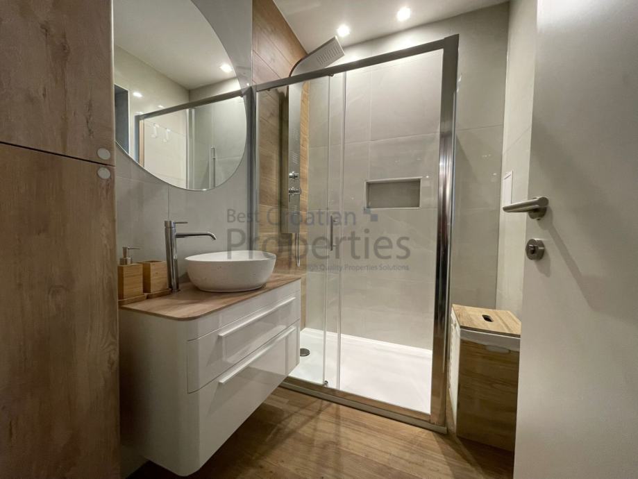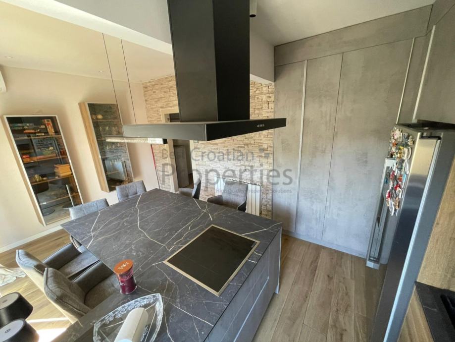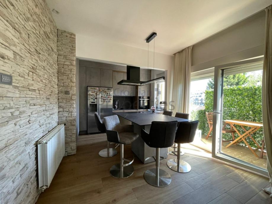 Kompletno je namješten i spreman za useljenje. BOSCH aparati, dvije klime, video portafon, ugradbeni ormari...