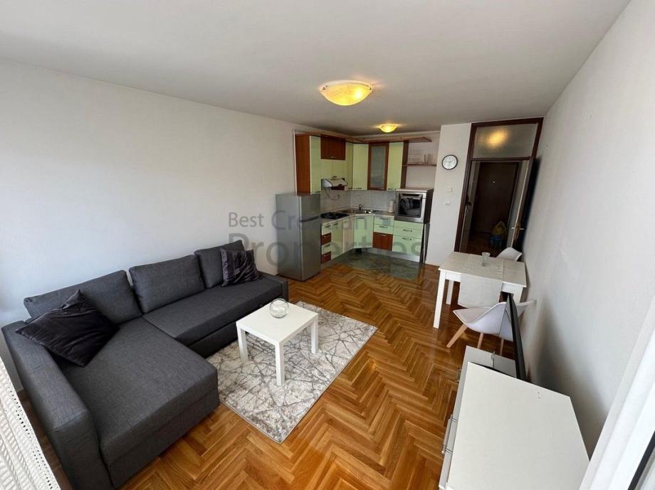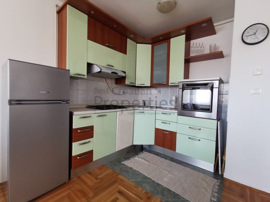 Stan je nedugo adaptiran. Namještaj je potpuno nov, kutna garnitura na razvlačenje, sa nadmadracom za spavanje, opremljena kuhinja, perilica posuđa, novi hladnjak, pećnica, napa, posuđe.