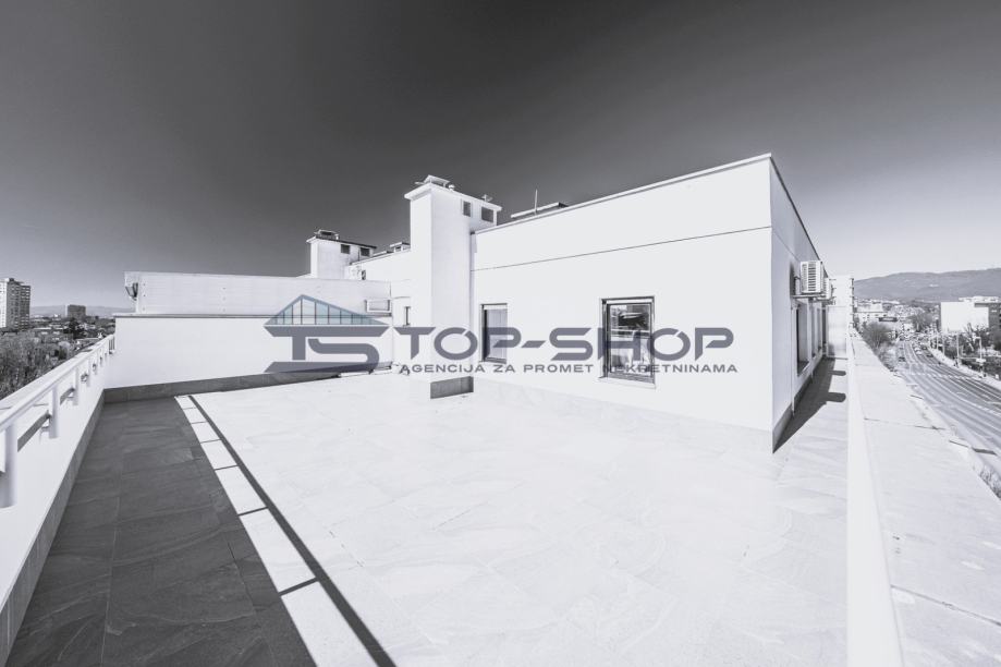 Iznajmljuje se penthouse na petom katu novije zgrade na izuzetno povezanoj i funkcionalnoj lokaciji. Izuzetno je prostranog tlocrtnog rasporeda uz terasu koja garantira komociju.