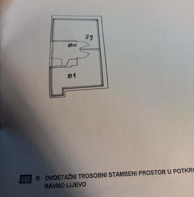 Donja etaža – ulazni hodnik, kupaonica s WC-om, kuhinja s blagovaonicom i dnevni dio s izlazom na terasu, terasa.