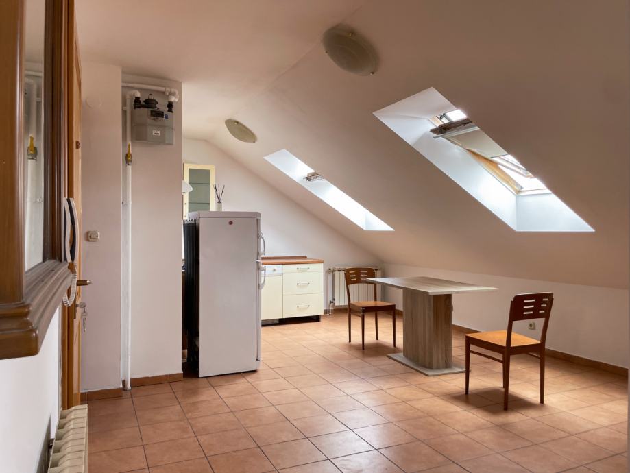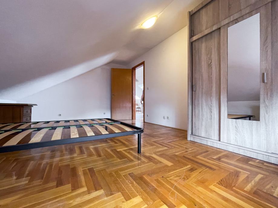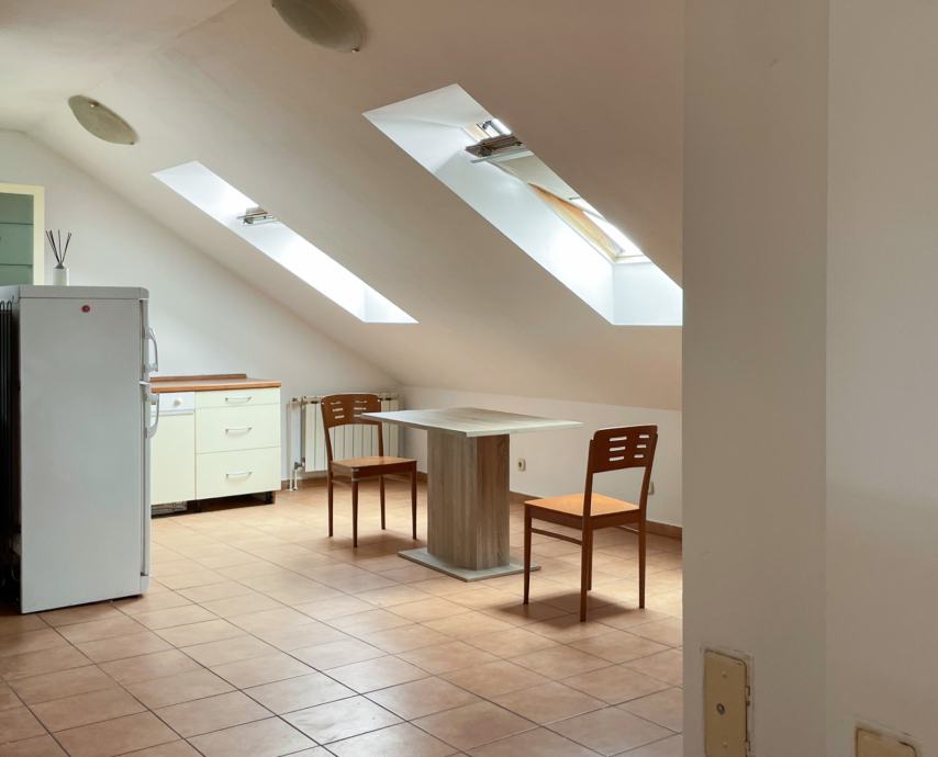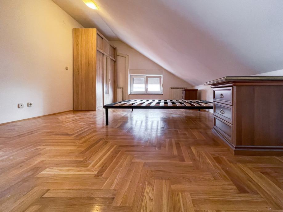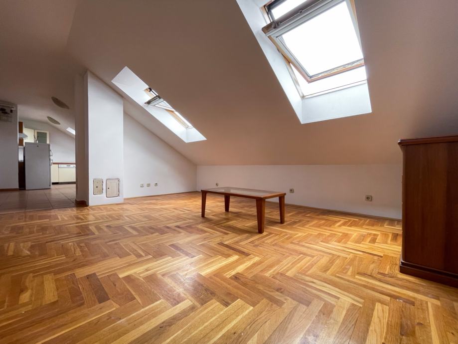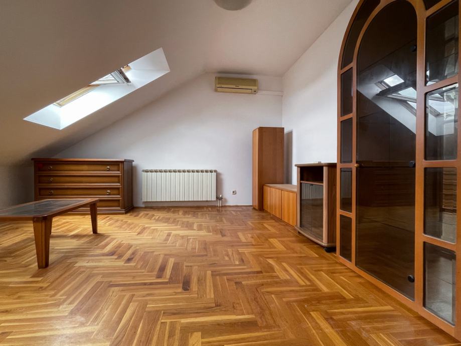 Stan se nalazi u potkrovlju od ukupno tri etaže u zgradi građena 2005 godine. Smješten je u ulici u neposrednoj blizini Konzuma, pošte, banke, dječjeg vrtića, škole, doma zdravlja, kafića, teretane Gyms4you i ostalih sadržaja.