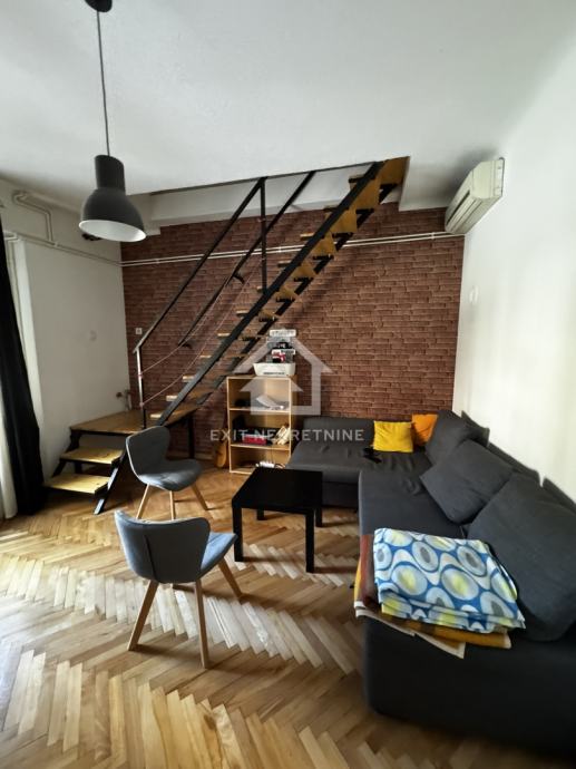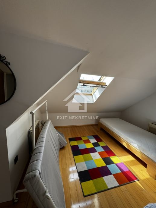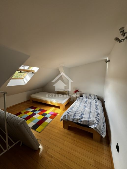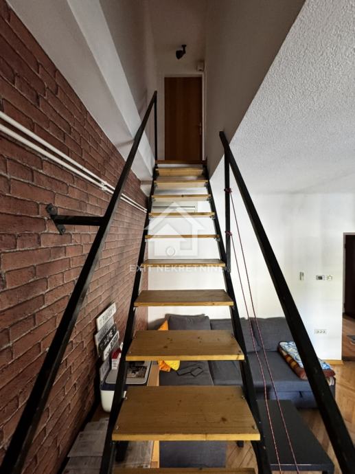 Stan se sastoji od dvije etaže. Na donjoj etaži je DB, kuhinja s blagovaonom i balkonom, predsoblje te kupaona s wc-om. Gornja etaža se sastoji od dvije prostrane spavaće sobe (potkrovno). Stanu pripada i posebno spremište.