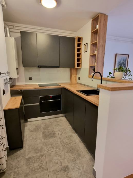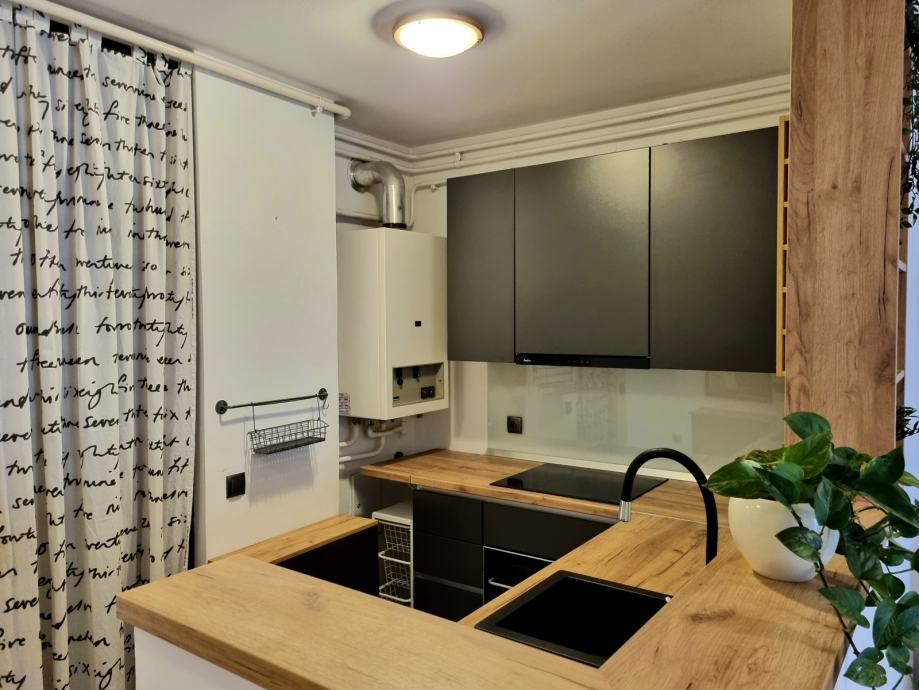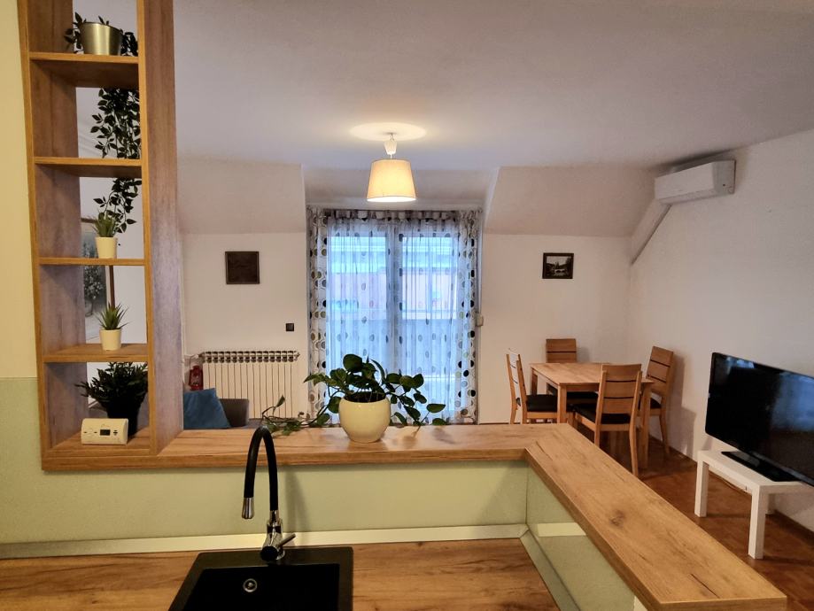 Kuhinja je rađena po mjeri, a svi aparati su uključeni u cijenu. Ugrađena su protuprovalna vrata, te klima uređaj. Grijanje je etažno plinsko. Zgrada je manja, bez lifta, mirna i dobro održavana, s ukupno 4 kata i 6 stanova.