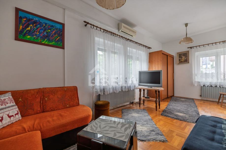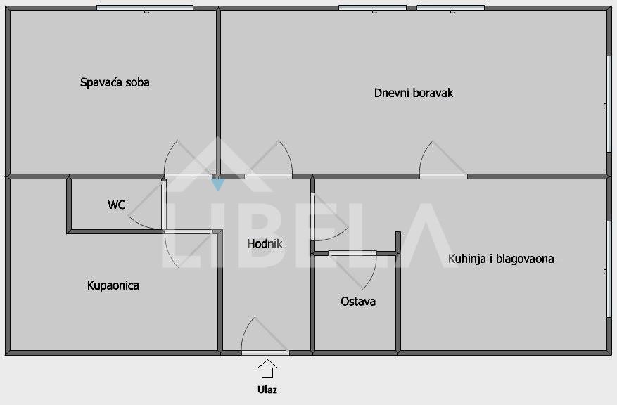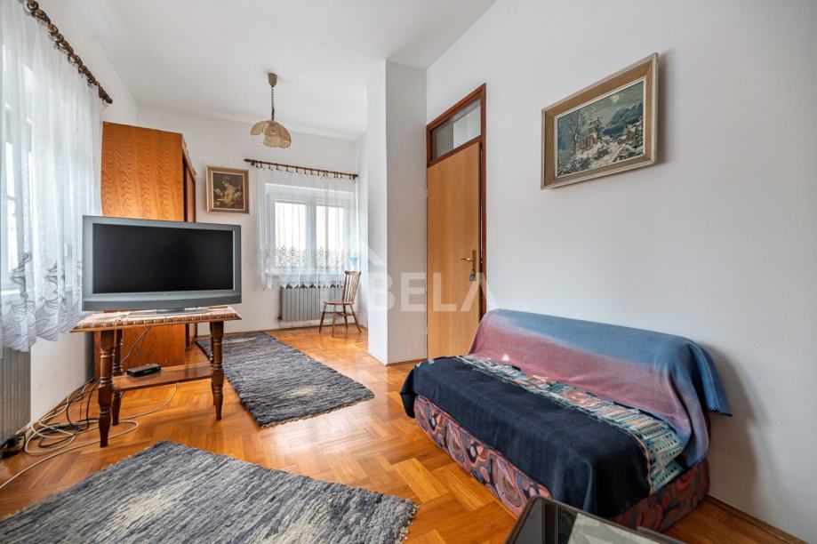 Sastoji se od velikog dnevnog boravka, spavaće sobe, kuhinje sa blagovaonicom i ostavom, kupaonice sa wc-om, još jednog wc-a, ulaznog hodnika, te pripadajućim spremištem u podrumu zgrade.