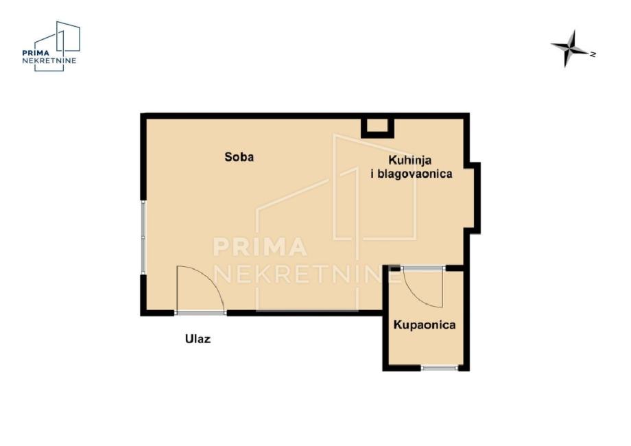 Stan se sastoji od kupaonice s WC-om te prostrane višenamjenske prostorije u kojoj su funkcionalno objedinjeni kuhinja, blagovaonica i dnevni boravak.