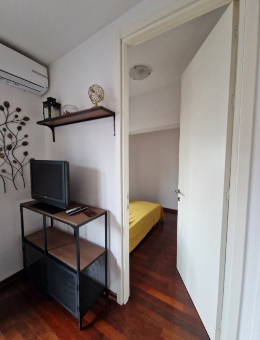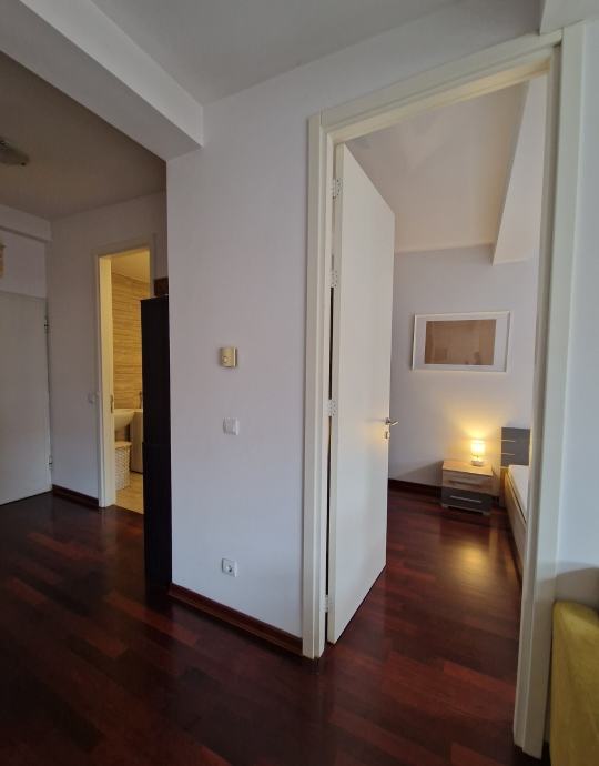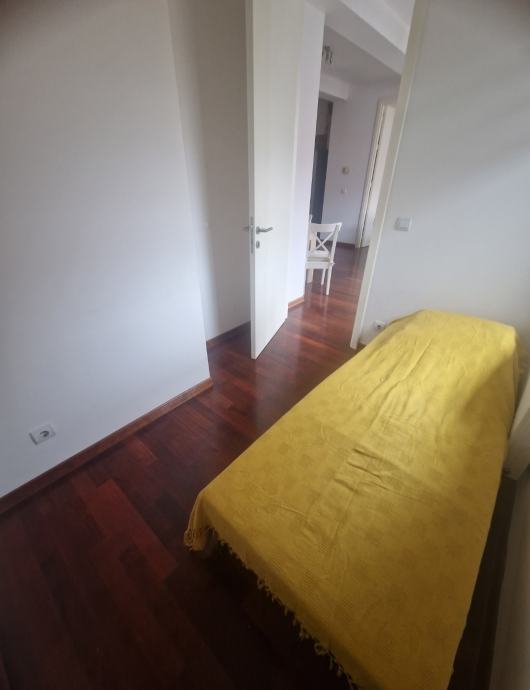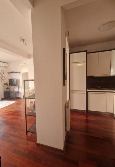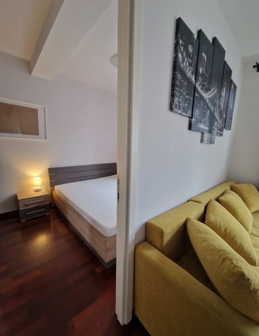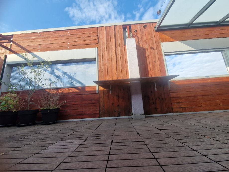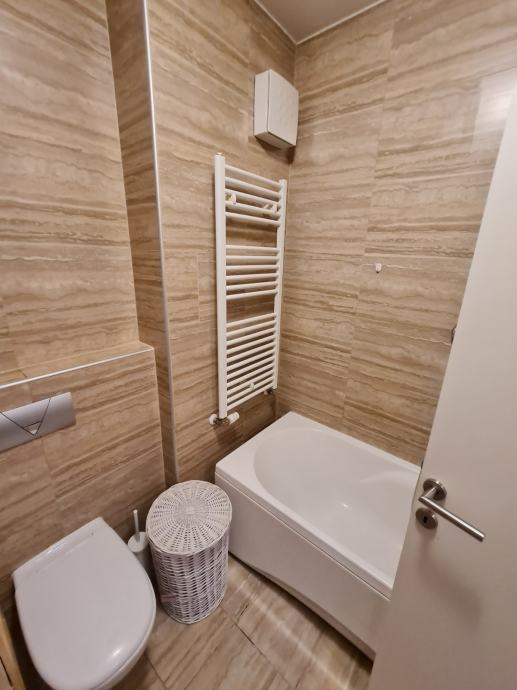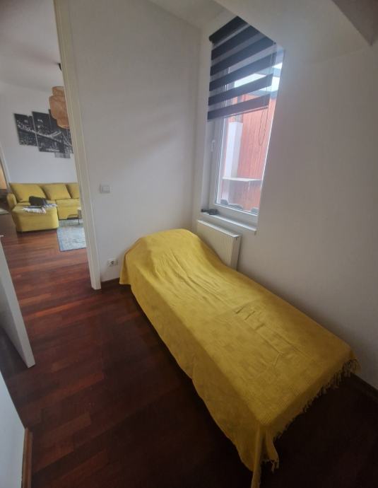 Prodaje se lijep 3soban stan na 5,katu stambene zgrade s velikom terasom. Stan je veličine 63m2, ali stambene površine oko 56 m2 jer je terasa oko 15m2. Stan se sastoji od kuhinje s blagovaonom i dnevne sobe s izlazom na veliki terasu, veće spavaće sobe u kojoj je veliki ugradbeni ormar, te manje sobe (7m2) koja je idealna za radnu sobu, manju gostinjsku ili dječju sobu u koju stane manji krevet.; te prostrane kupaone s kadom. Stan ima stropove više od standarda na nekim mjestima i 2,75 m, zbog puno staklenih površina i dobre orijentacije ima puno svijetla, i jako je ugodan za život. Terasa je dijelom zatvorena i na njoj postoji potencijal dodatnog uređenja ili pregrađivanja dijela za manji skladišni prostor. Stan je idealan za stanovanje ili kao investicija za najam budući se na toj lokaciji postižu visoke najamnine. PARKING: vlasnici imaju u vlasništvu i garažno mjesto u podzemnoj etaži. Parkirno mjesto ima princip dizala, što drugim riječima znači da se na garažnom mjestu mogu parkirati dva automobila (jedan ispod) ili se ta etaža predviđena za automobil može koristiti kao spremište. Veličina garažnog mjesta je 16m2. Kupnja garažnog mjesta nije obavezna, ono je upisano kao poseban dio/nekretnina i prodaje se ukoliko postoji potreba za njim po cijeni i 37.000 eura. VLASNIŠTVO: stan je upisan u zemljišne knjige, i ima svu potrebnu dokumentaciju za kupnju kreditom banke (uporabna dozvola i energetski certifikat B) RASPOLOŽIVOST: stan je raspoloživ i useljiv