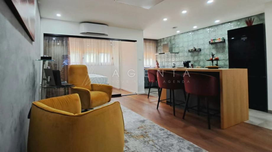 Ovaj stan spaja luksuzne materijale i suvremeni dizajn s praktičnim i funkcionalnim rješenjima, čineći ga idealnim za udoban i sofisticiran život.