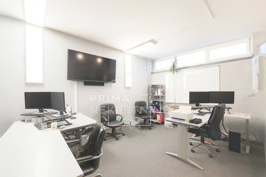 Prodaje se funkcionalan poslovni prostor smješten u suterenu armirano betonske, stambeno-poslovne zgrade iz 1987. godine, idealan za uredske, uslužne ili manje proizvodne djelatnosti.
