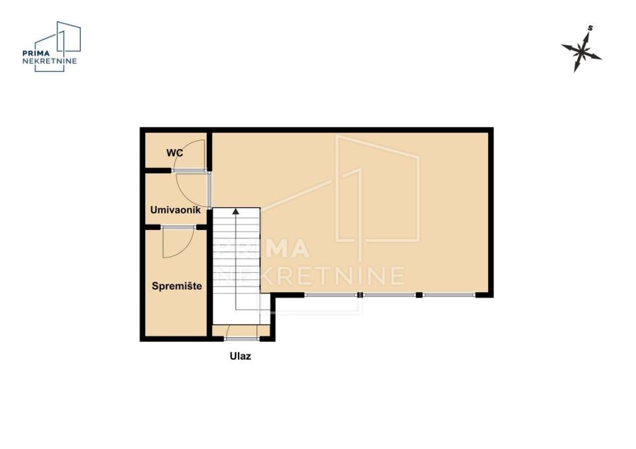 Sastoji se od jednog većeg otvorenog prostora, sanitarnog čvora i spremišta. Visina stropa je 2.80 m.