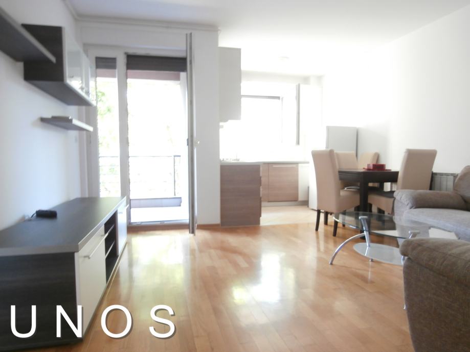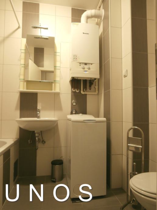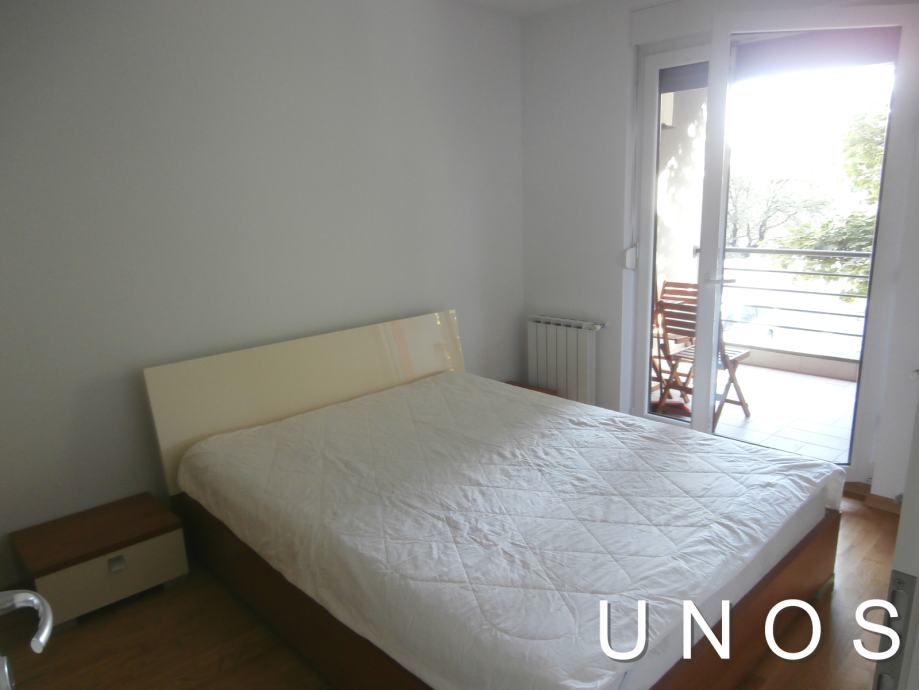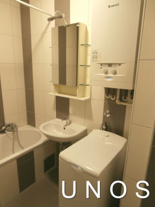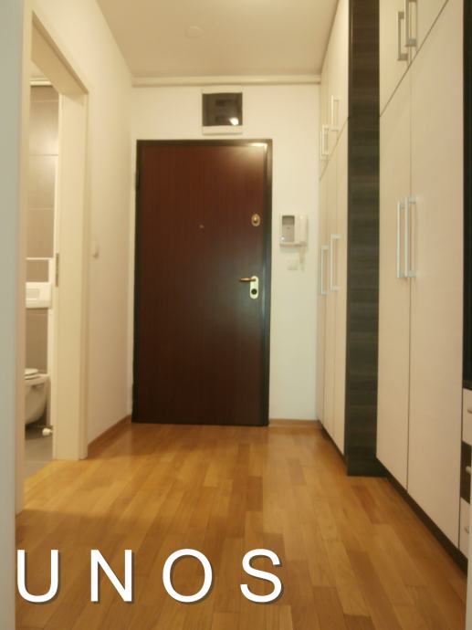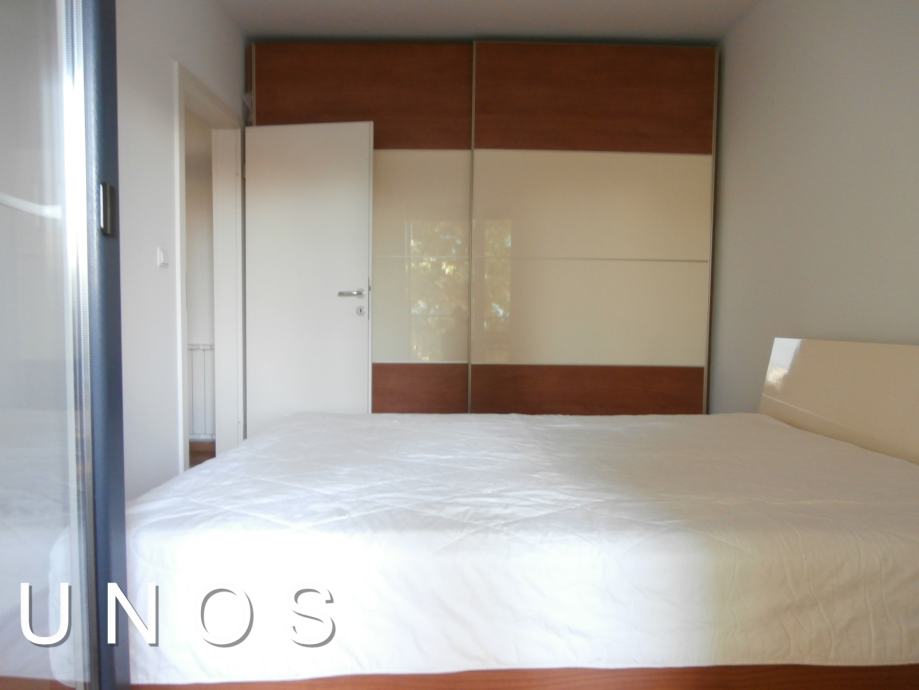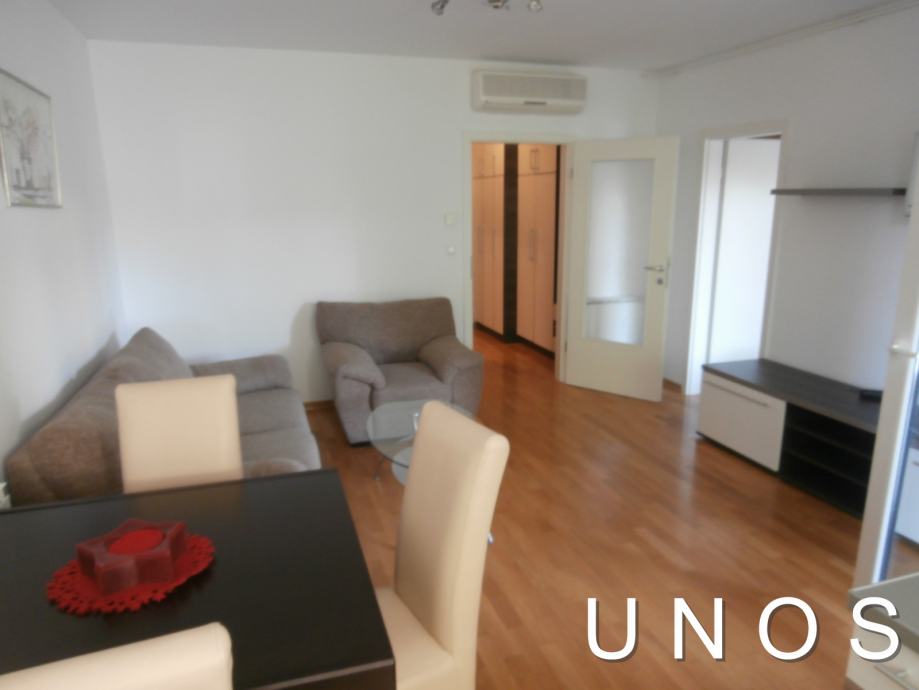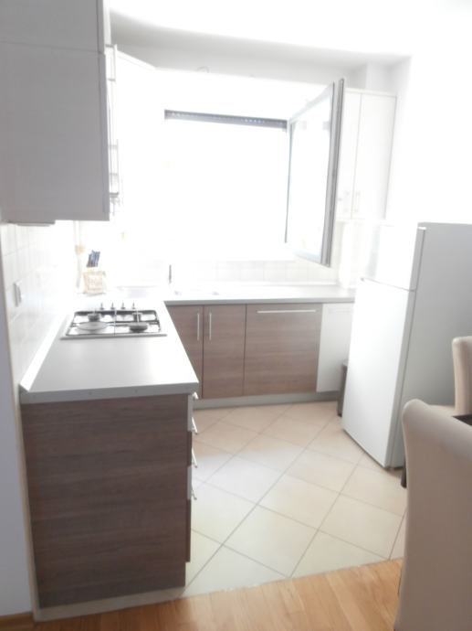 Dvosoban namješteni stan na prvom katu (lift) novije stambene zgrade (2008), koji se sastoji od hodnika, kupaonice s wc-om, kuhinje s velikim boravkom, sobe i velike lođe. Orijentacija jug (svijetao). Mirno.
