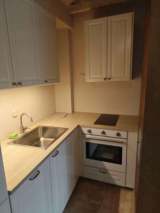 Stambeni prostor je ugodan i s mnogo prirodnog svjetla. Stan je trenutno s potpuno novom nekorištenom kuhinjom i krevetom (novi, nekorišteni madrac i nafmadrac), ostalo se može po potrebi namjestiti ili može najmoprimac donijeti svoj namještaj - sve po dogovoru.