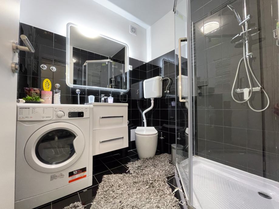 Kuhinja je opremljena sa svim potrebnim kuhinjskim elementima koji dolaze s pećnicom, caffe aparatom, perilicom posuđa i hladnjakom, u kupaoni se nalazi perilica i sušilica rublja.