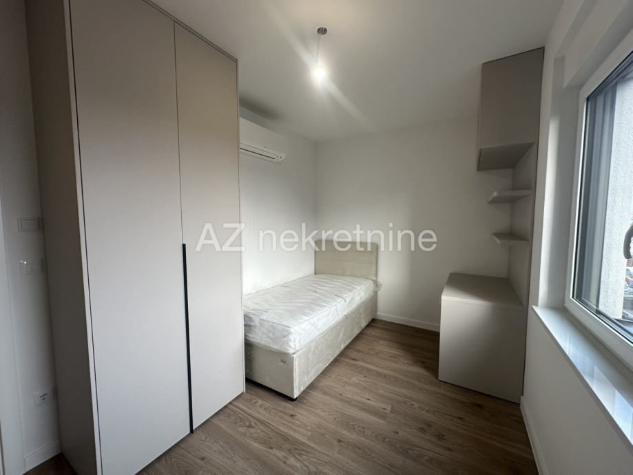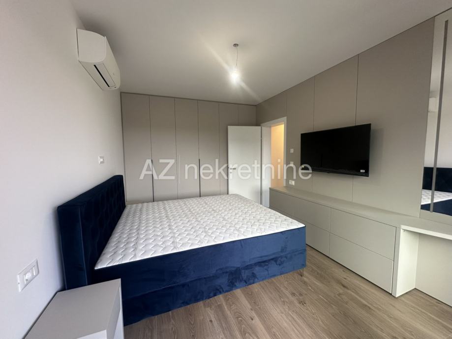 U novogradnji iznajmljuje se moderno namješten stan, sjeverno-južne orijentacije, udaljen od centra grada svega 10 minuta.