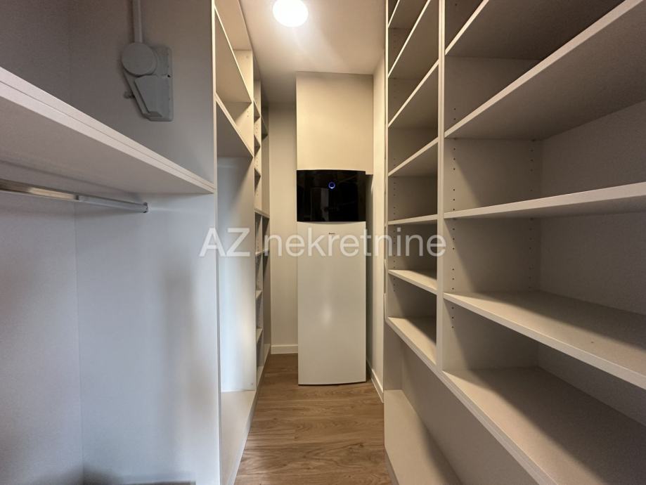 Stan se sastoji od ulaznog hodnika, garderobne sobe, 3 spavaće sobe, dvije kupaonice i dnevni boravak sa blagovaonicom i kuhinjom iz kojih se izlazi na jedan od tri balkona. Stanu pripadaju dva garažna mjesta i spremište. Odlična mikrolokacija- neposredna blizina trgovina, ljekarni, gradskog prijevoza, tržnice, te samog centra grada. Stan je vrlo ugodan, svijetao, te odličnog tlocrtnog rješenja.