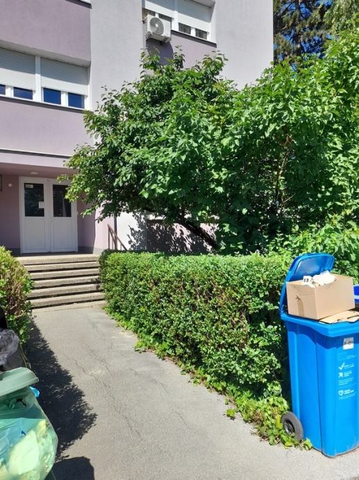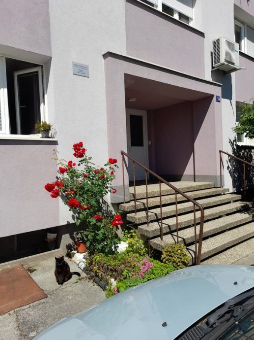 Zgrada okružena zelenilom, ulica mirna, slijepa sa besplatnim parkingom, hodom 7 min do tramvaja , 5 min do autobusa za Mažuranac.