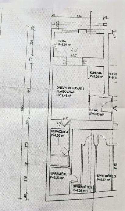 - kupaonice - 4.09 m2 (proširivo za dodatnih 3.23 m2)