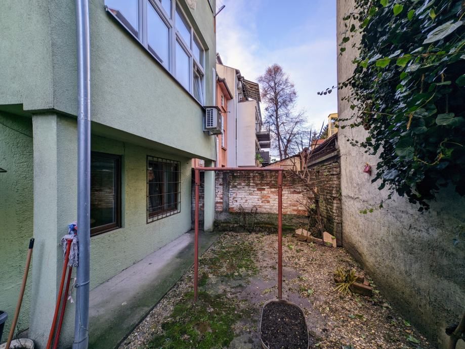 Izlaz na mali vrt na sjevernoj strani zgrade.