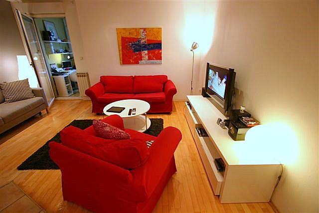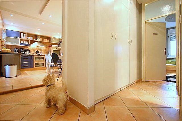 Ugodan, lijepo uređen IKEA stan na Trešnjevci u neposrednoj blizini Trešnjevačkog placa. Stan se nalazi u zgradi izgrađenoj 2000. godine. U stanu dominira prostrani boravak povezan s velikom kuhinjom i blagovaonicom, mala radna soba te veće spavaća soba u koju će se staviti novi bračni krevet. Mala kupaona ima veš mašinu te posebno sušilicu,tuš kabinu, toalet i umivaonik. Poseban ugođaj daju i spušteni stropovi s efektnom rasvjetom. Stanu pripada i ostava od 2m2 u podrumu kao i garaza u zgradi.Kauč i fotelja imaju i prugaste presvlake koje se po zelji mogu mjenjati.Internet aktivan u paketu Iskon duo s preko 60 tv programa.