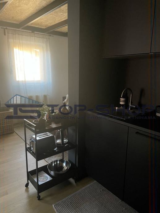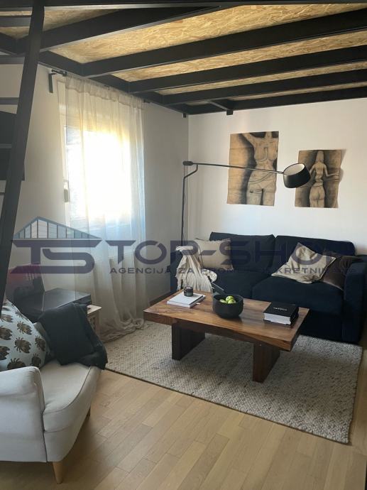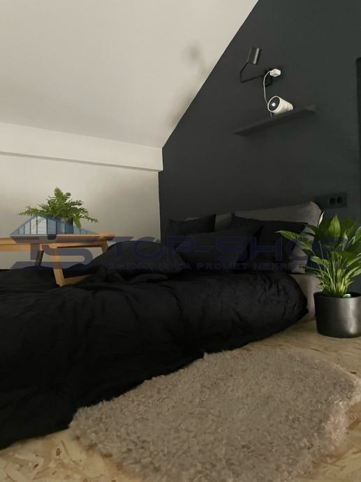 Stan je osmišljen tako da maksimalno iskorištava prostor te pruža kombinaciju funkcionalnosti, udobnosti i suvremenog dizajna, što ga čini idealnim za samce ili mlade parove.