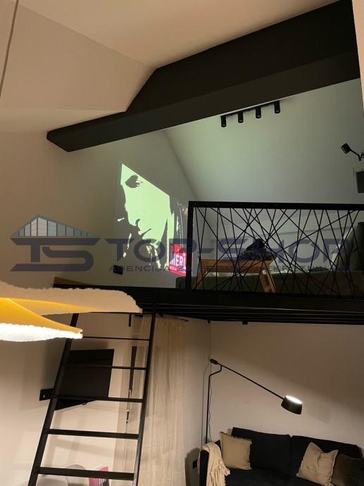 Na galeriji se nalazi udoban krevet, a zahvaljujući dovoljnoj visini prostora, zid galerije može se koristiti za projekciju, što omogućuje stvaranje pravog kućnog kina i dodatno doprinosi dojmu prostranosti i modernog načina stanovanja.