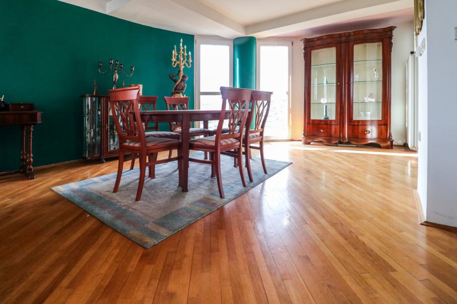 Stan je očuvan jer se u njemu nije puno stanovalo. Prodaje se sa svim ugradbenim dijelovima namještaja i kuhinjom. Komode, vitrina i stolovi u dnevnom boravku mogu se otkupiti po dogovoru s novim kupcima ali ne ulaze u cijenu stana.