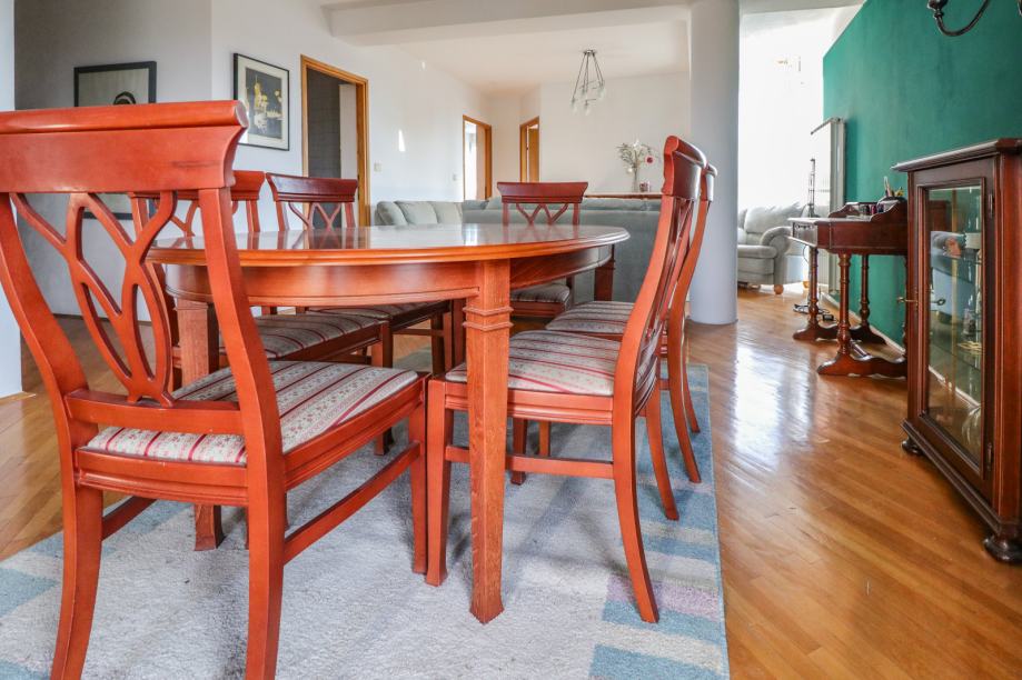 Stan je očuvan jer se u njemu nije puno stanovalo. Prodaje se sa svim ugradbenim dijelovima namještaja i kuhinjom. Komode, vitrina i stolovi u dnevnom boravku mogu se otkupiti po dogovoru s novim kupcima ali ne ulaze u cijenu stana.