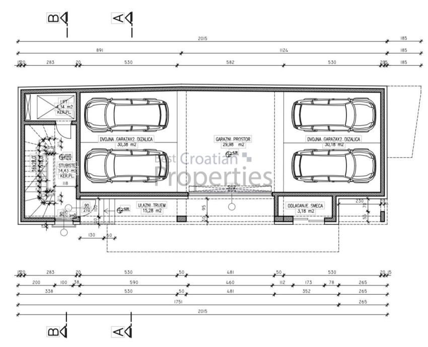 Stan ima pripadajuća dva garažna parkirna mjesta (ukupno 30m2).