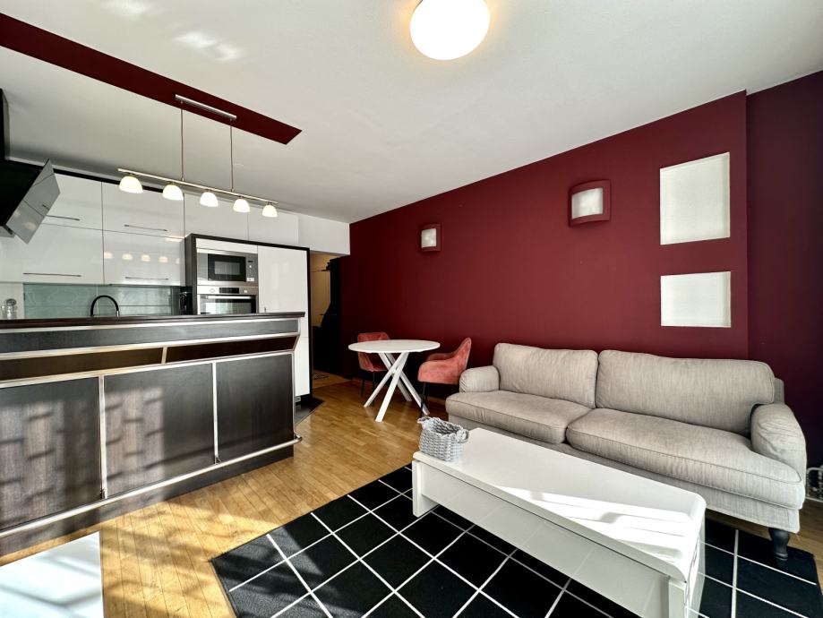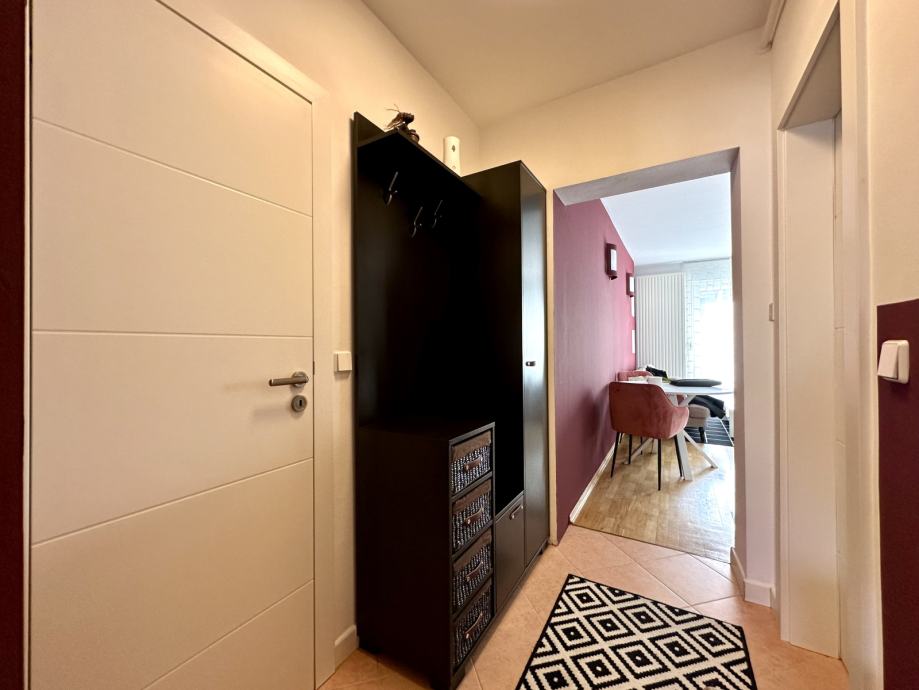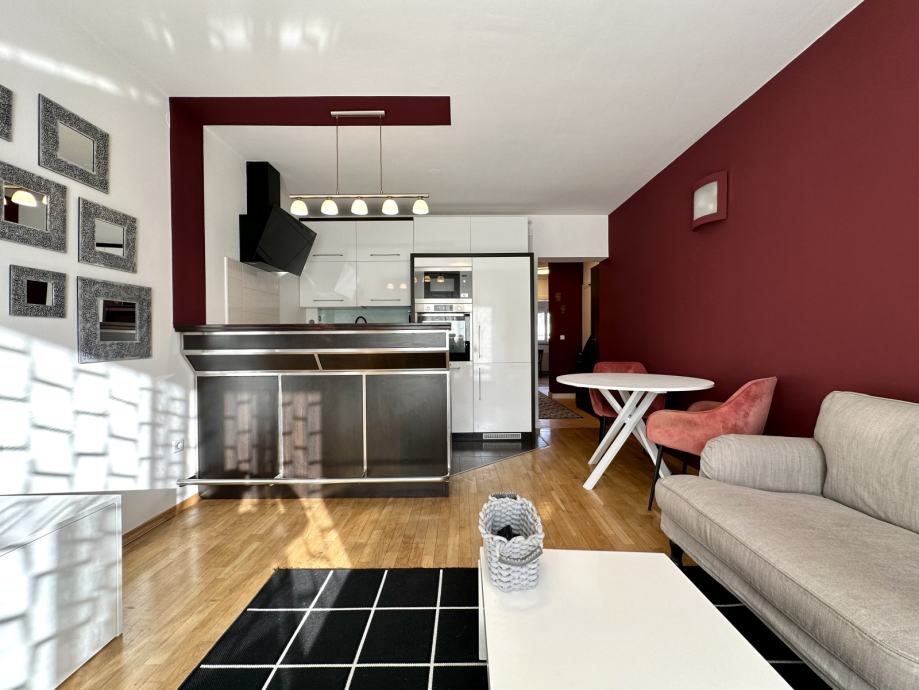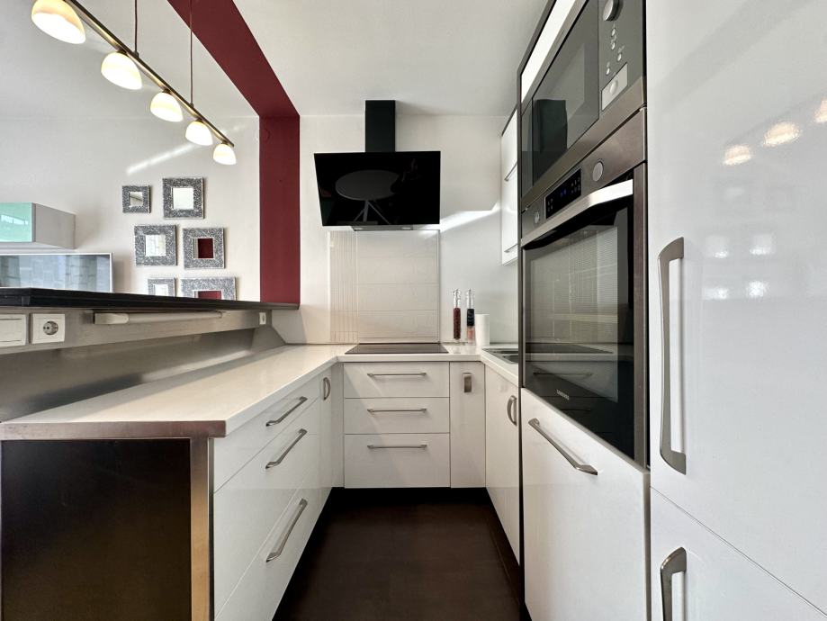 The apartment has a private parking space under the ramp in the building's courtyard.