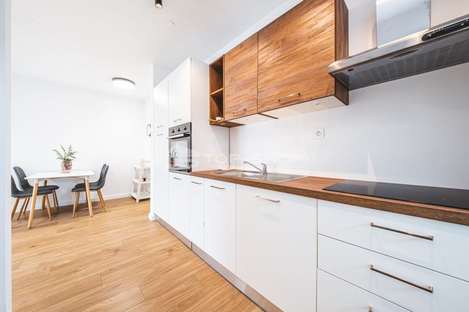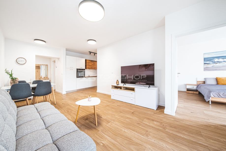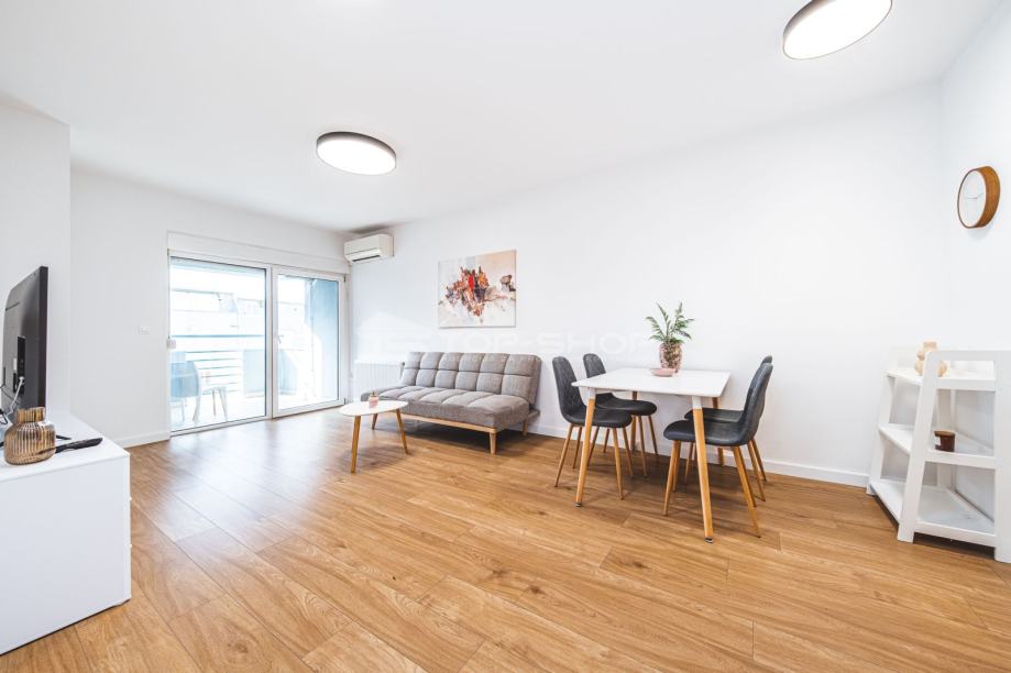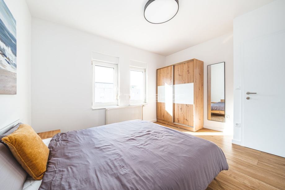 Smješten je u blizini svih sadržaja ključnih za ugodan i lagodan život.Dućani, ljekarne, bolnice, ambulante, škole, vrtići, javni prijevoz na svega 5 minuta hoda.