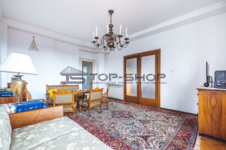 Nalazi se na izuzetnoj lokaciji - na samom Trgu Bana Jelačića. Najbolja i najtraženija lokacija u gradu Zagrebu. Stan je izuzetno svijeto, visina stropova oko 3m. Stan je djelomično renoviran 1980-ih godina (npr s jedne strane stana stavljeni novi PVC prozori, promijenjen dio poda/parketa.