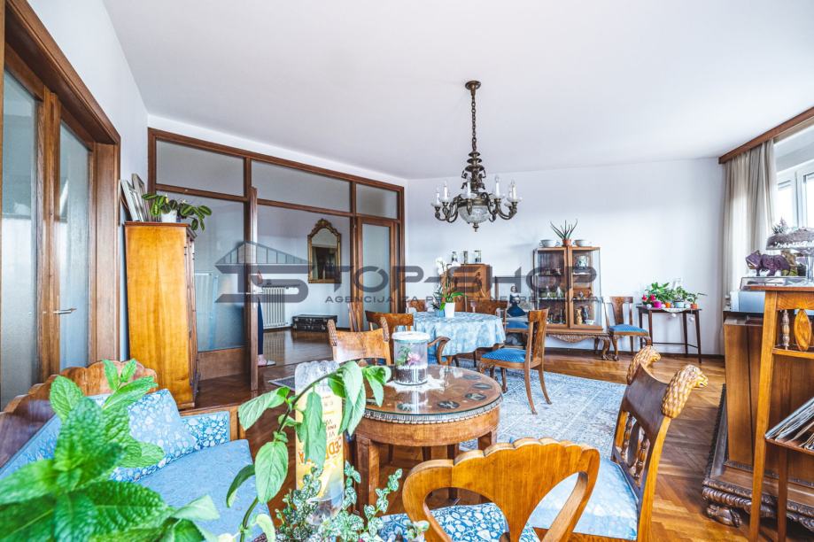 Trg Bana Jelačića, prostran građanski stan odličnog rasporeda na petom katu u zgradi s liftom ukupne površine 137 m2.