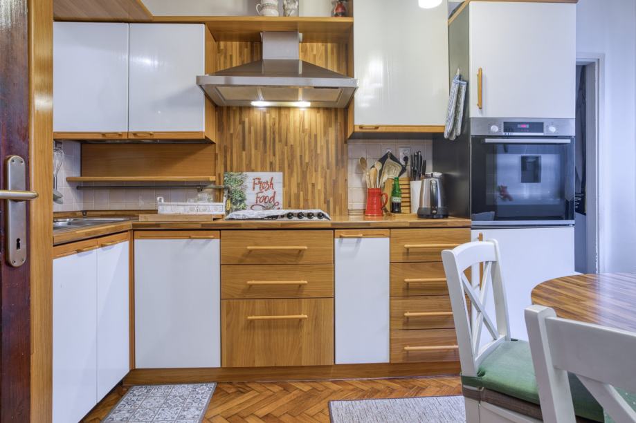 Ovaj prostran i potpuno renoviran stan nudi prekrasan pogled na zelenilo te se sastoji od ulaznog hodnika, tri spavaće sobe, prostranog dnevnog boravka s kaminom, kuhinje s blagovaonicom, kupaonice s walk-in tušem, zasebnog toaleta i malog balkona.