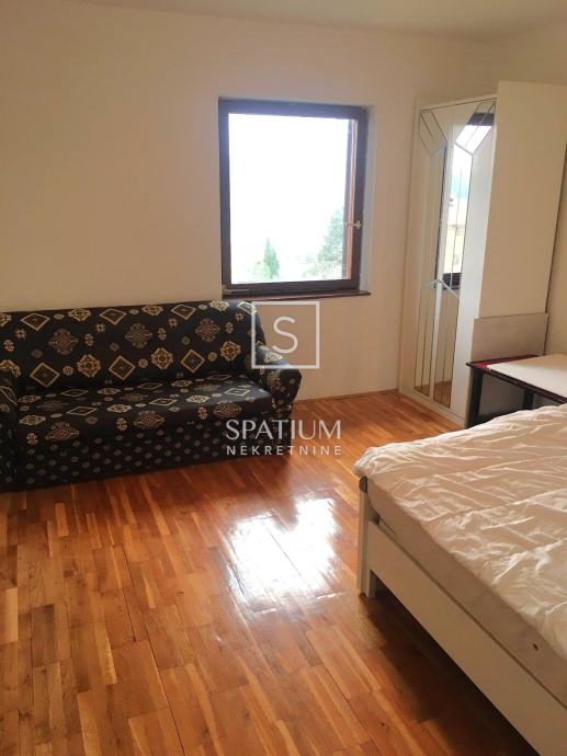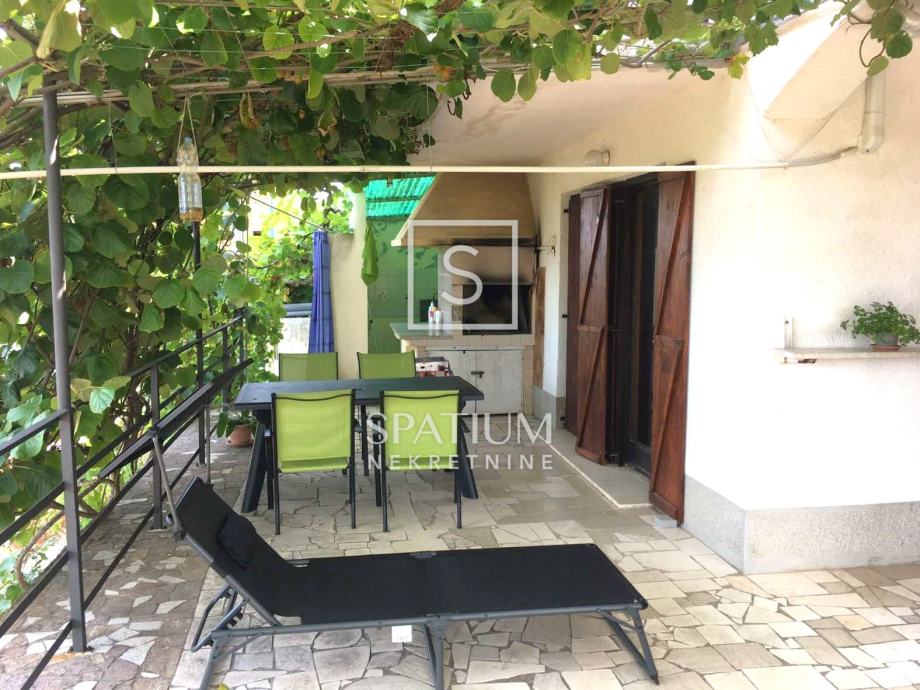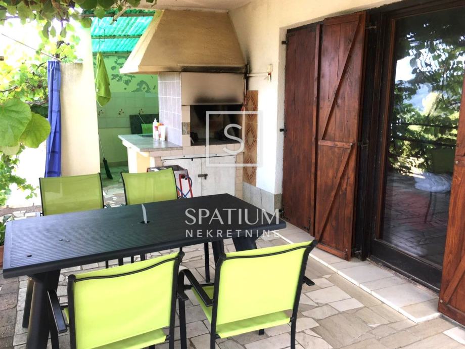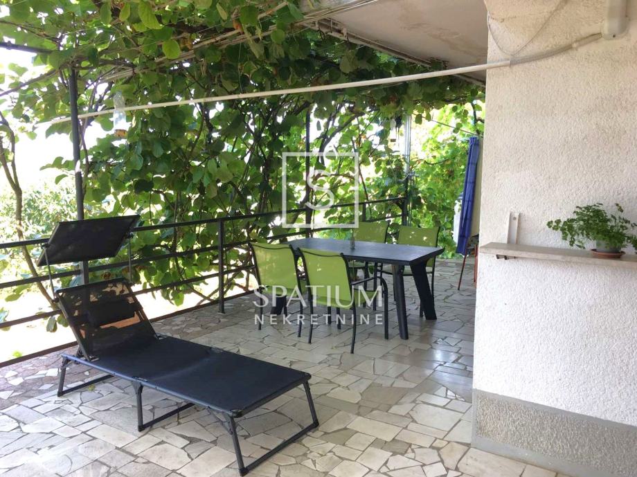 TRGET, u ponudi je prostrana kuća ukupne površine 247,26 m2 raspoređenih na suteren, prizemlje i kat. Dva su odvojena stana što je čini zanimljivom kao turističku investiciju. U suterenu se uz garažu nalaze spremište i radiona ukupne površine 65 m2. Stan u prizemlju površine 96,70 m2 sastoji se od dvije spavaće sobe, dnevnog boravka s kuhinjom i blagovaonom, kupaone te ostave. Prizemlje je okruženo terasama u zelenilu, idealnima za provođenje ljetnog odmora. Na katu je dvosoban klasičan stan površine 85,58 m2 s čijeg se balkona pruža otvoreni pogled na zaljev.