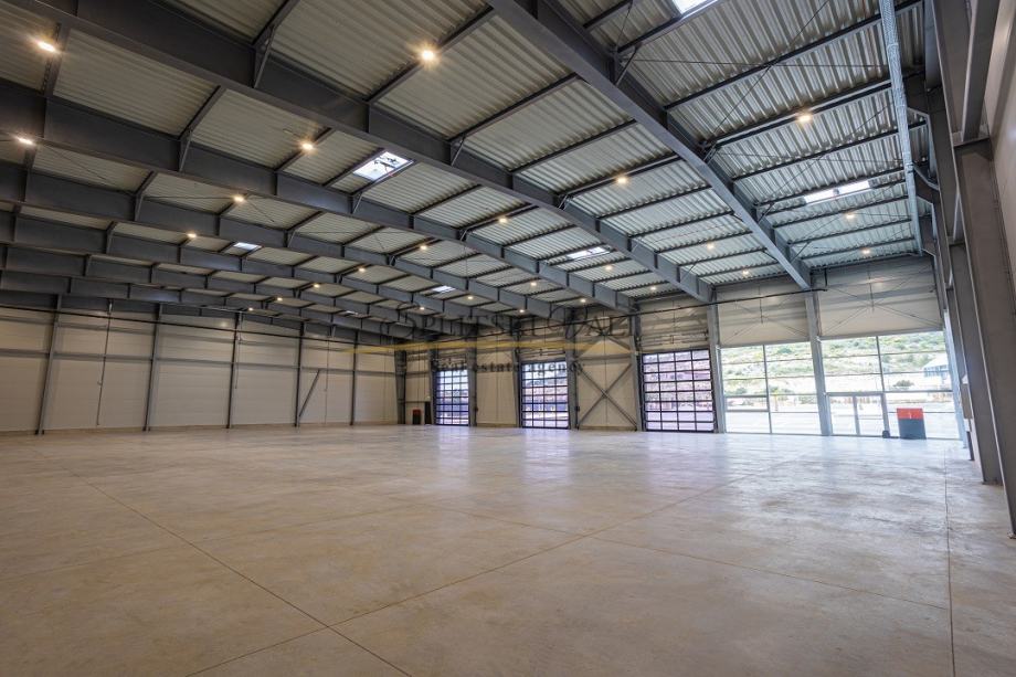 Iznajmljuje se moderno trgovačko–prodajno skladište u poslovnoj zoni Plano, u blizini Trogira. Objekt površine 1.600 m² smješten je na prostranoj parceli od 7.100 m², s izvrsnim pristupom glavnoj prometnici i odličnom povezanosti prema Trogiru, Splitu i autocesti.
