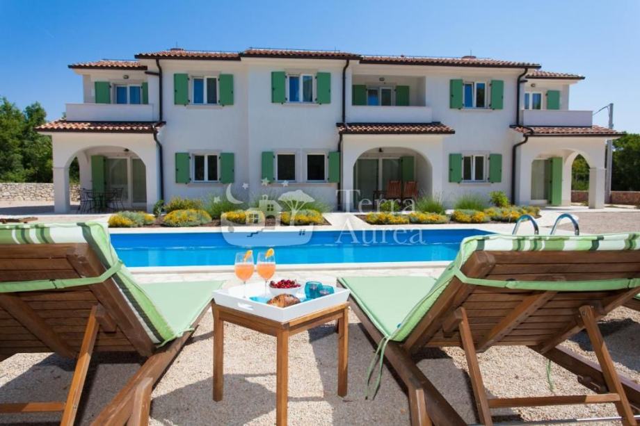 Tri kuće u nizu s bazenom, okolica Dobrinja, otok Krk (prodaja)
