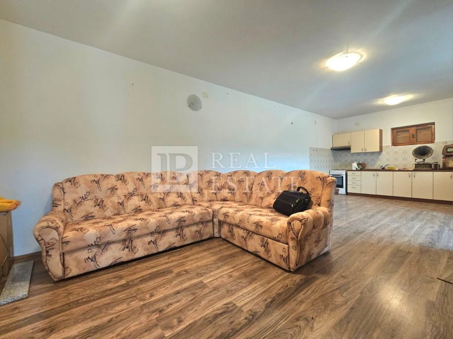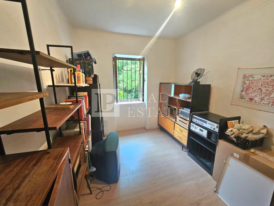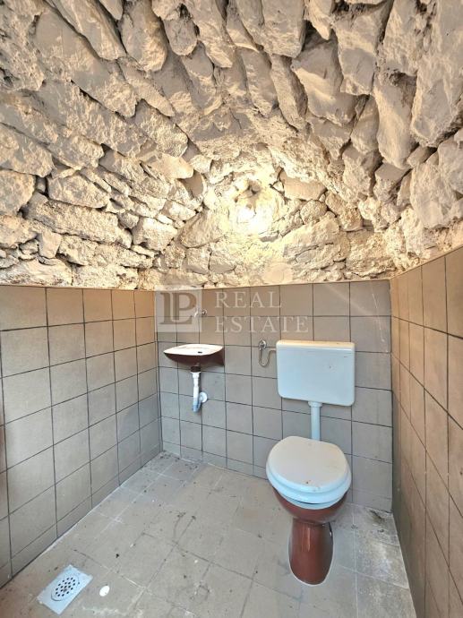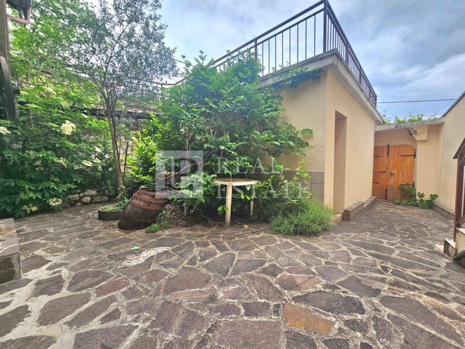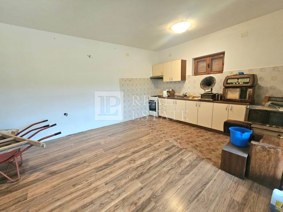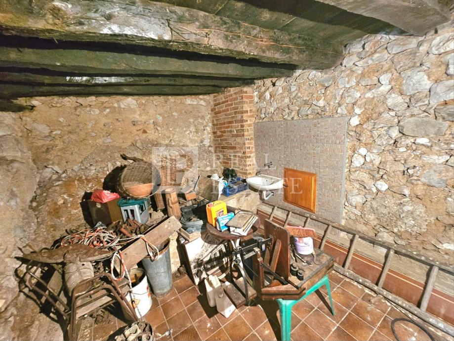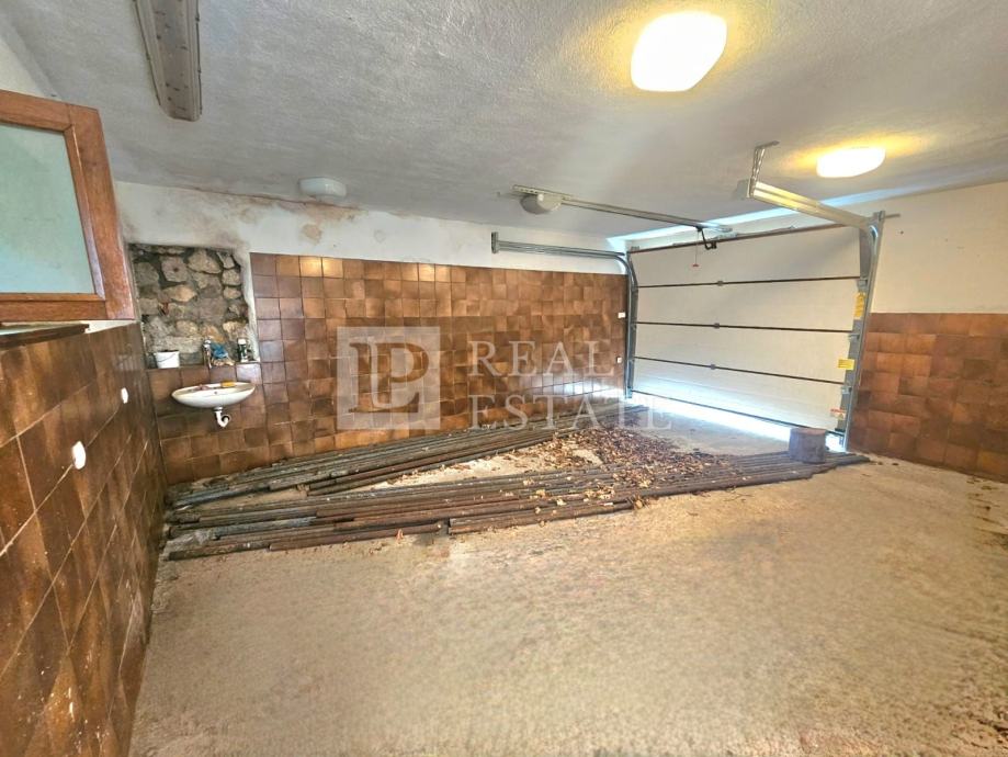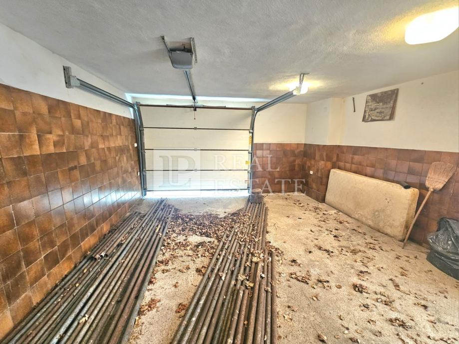 U prizemlju nekretnine se nalaze konoba, wc, drvarnica i vrt. U vlasništu je još jedan vrt od 70-ak m2 koji se nalazi u neposrednoj blizini kuće. Garaža za parking dva automobila se također nalazi u prizemlju.