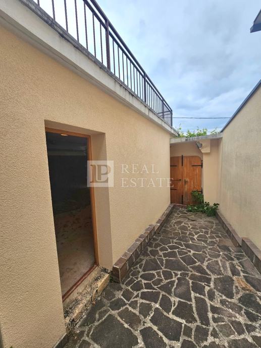 Kuća ima ulaz i sa stražnje strane, a ono što izdvaja ovu nekretninu od ostalih su visoki zidovi kojima je ograđeno cijelo prizemlje čime je zajamčena maksimalna privatnost budućeg kupca.