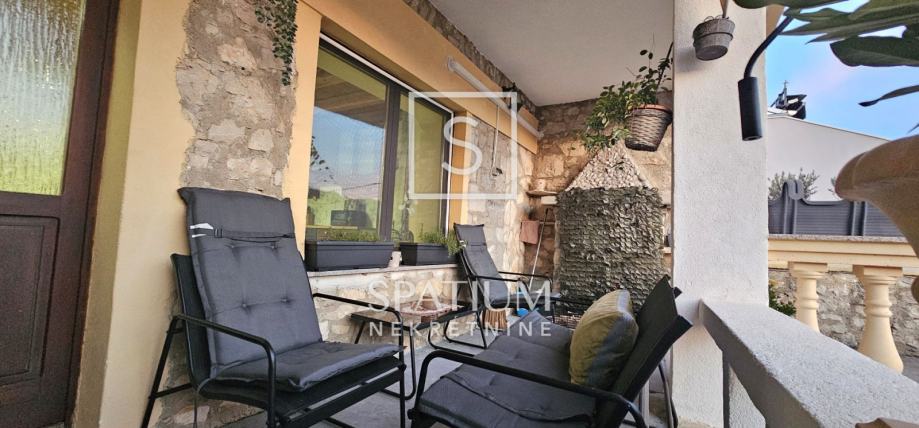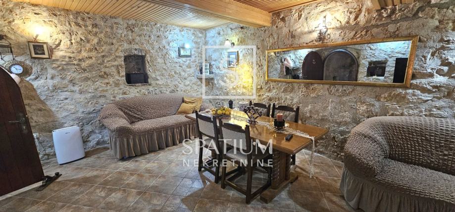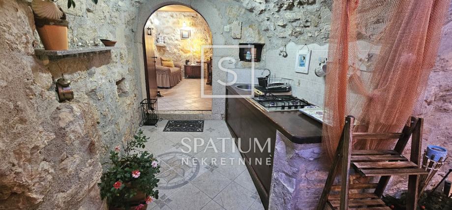 Prizemlje: konoba uređena u ugodan prostor za druženje, ljetna kuhinja, kupaona, ograđeno dvorište zaštićeno od vanjskih pogleda.