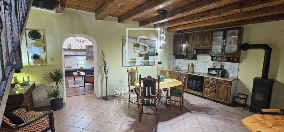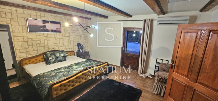 Kuća je opremljena s puno pažnje i potpuno namještena, klimatizirana, a peć na drva omogućuje boravak tijekom cijele godine.