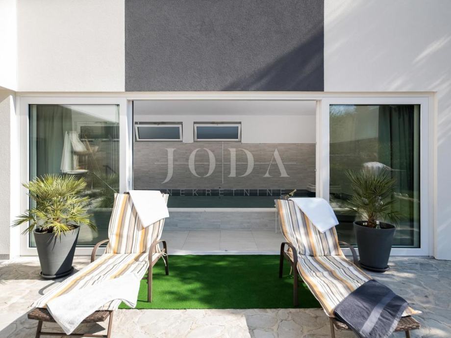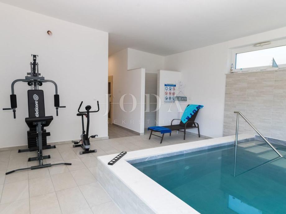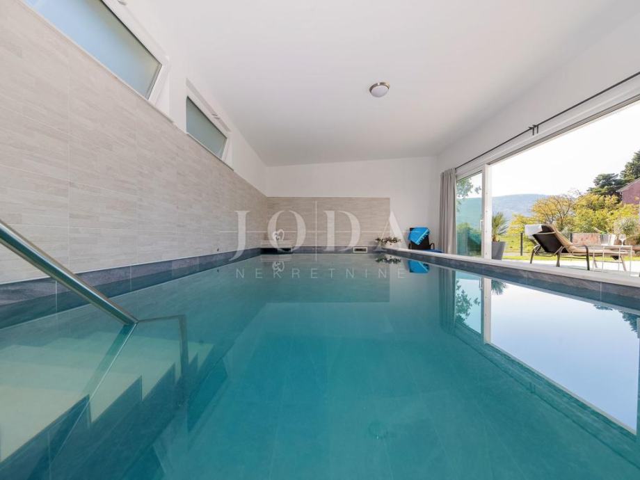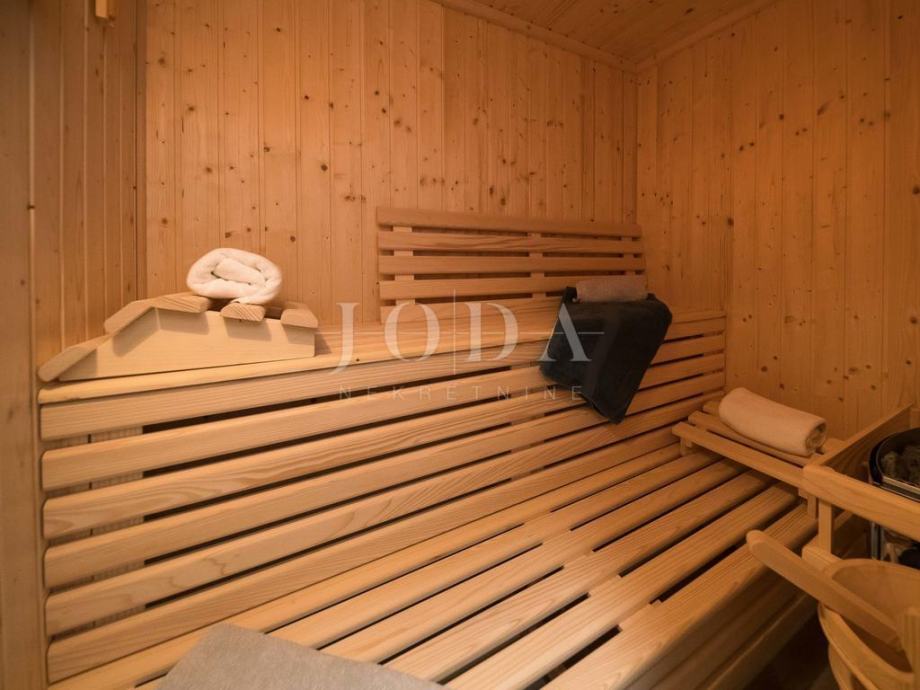 U suterenu je smješten dio za odmaranje i zabavu koji se sastoji od saune, kupaonice, zatvorenog bazena (koji se po potrebi kliznim stijenama otvara i spoji se sa vanjskim prostorom), spremišta, velike hobi sobe iz koje se izlazi na veliku terasu djelomično natkrivenu sa roštiljom. Unutarnje stepenice povezuju sve katove kuće tako da se iz suterena dođe u prizemlje koje se sastoji od spavaće sobe sa kupaonicom, dnevnog boravka, kuhinje sa blagavaonicom i lijepe terase.
