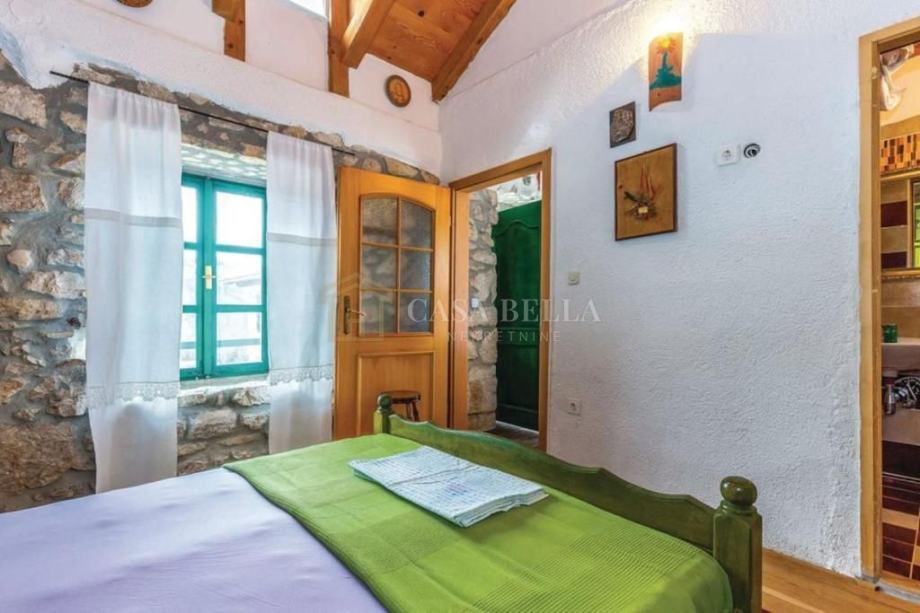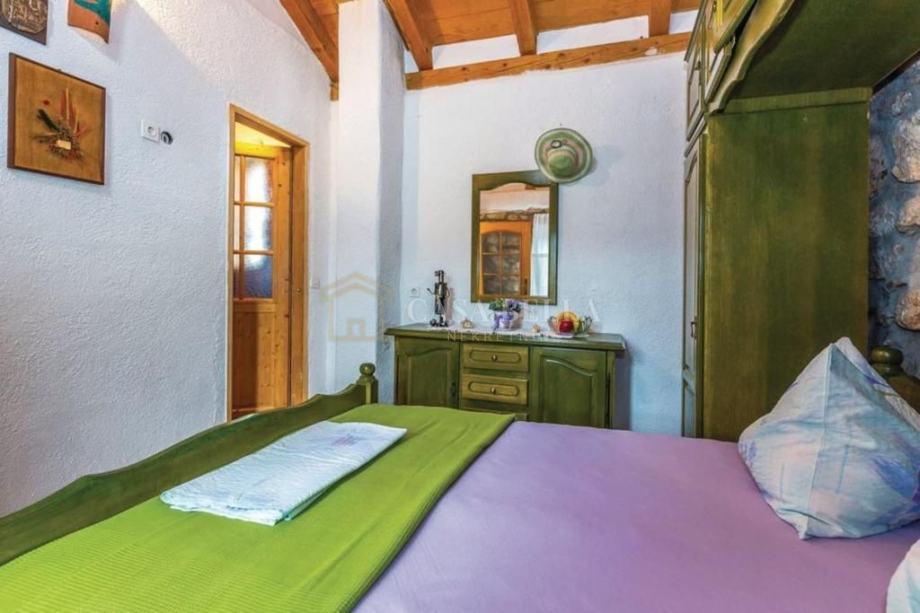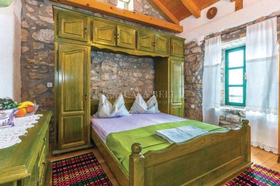 Unutrašnjost kuće nudi ugodan i funkcionalan interijer koji se savršeno uklapa u rustičnu estetiku. Namještaj je odabran s pažnjom, naglašavajući povijest kuće, ali istovremeno pružajući svu potrebnu suvremenu udobnost.
