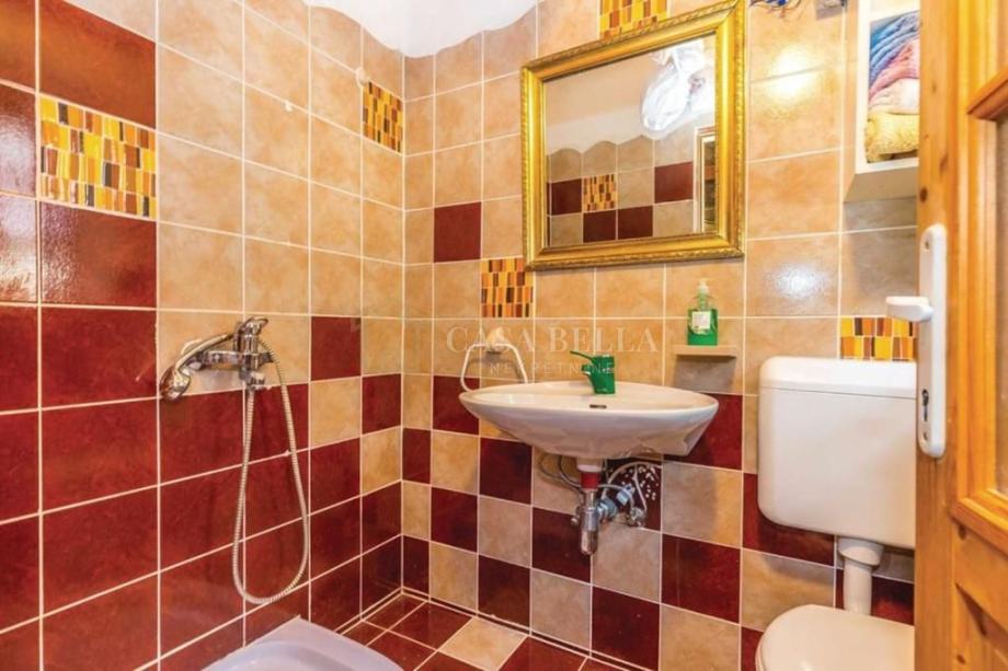 Prizemlje kuće nudi prostrani dnevni prostor spojen s kuhinjom i blagovaonicom, stvarajući središnje mjesto za okupljanje obitelji i prijatelja. Također se tu nalazi i jedna udobna spavaća soba s vlastitom kupaonicom, toalet za goste te praktično spremište.
