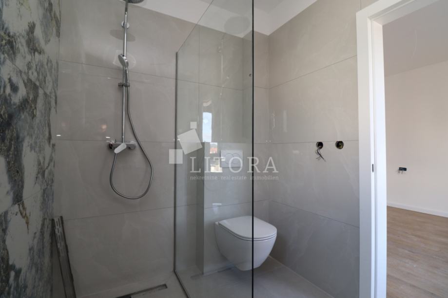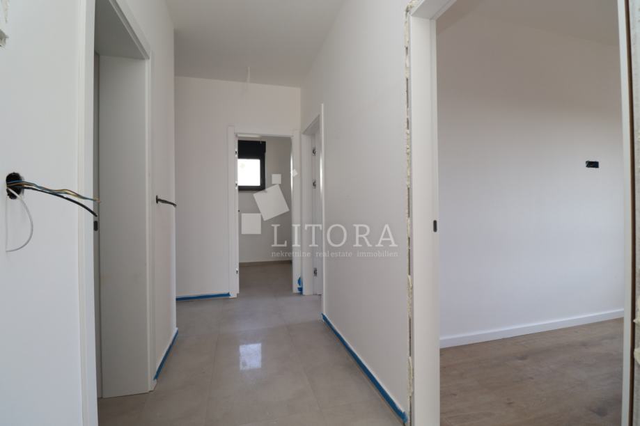 Tribunj, u neposrednoj blizini plaže i centra mjesta, nalazi se moderno projektiran apartman na 2.kat stambene zgrade. Apartman ima 132m² korisne površine, natkrivenu terasu od 44m². Unutrašnjost stana čine predvorje, 2 kupaonice, gostinjski toalet, praonica, tri spavaće sobe te prostrani dnevni boravak s blagovaonicom i kuhinjom, s direktnim izlazom na terasu. Stan je orijentiran na istočnu stranu, što osigurava ugodnu jutarnju svjetlost. Apartman će biti useljiv do kraja 2025. godine, a pri gradnji i opremanju koriste se materijali i oprema visoke kvalitete. Bit će opremljen protuprovalnim vratima, klima uređajima u svim prostorijama, električnim podizačima roleta, komarnicima te hortikulturno uređenim dvorištem s mediteranskim biljem i automatskim sustavom navodnjavanja. Uz apartman dolazi dva vanjska parkirna mjesta. Udaljenost od plaže Sinje more iznosi svega 550 metara, dok je centar mjesta na 500 metara.
