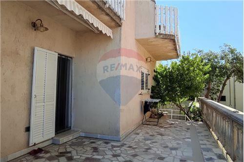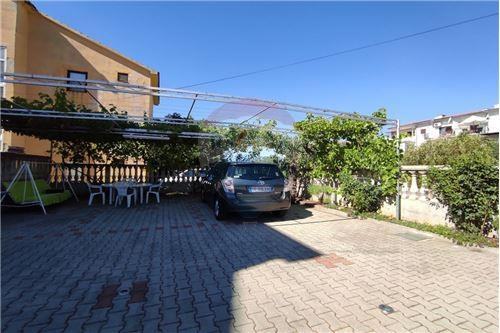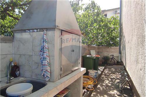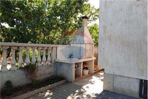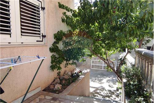 Ova komforna kuća ima veliko popločano dvorište ukrašeno raznim mediteranskim biljem, sa 7 parkirnih mjesta, roštiljem.
