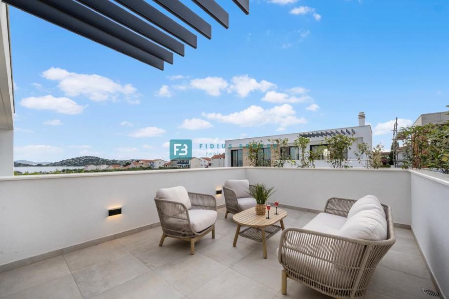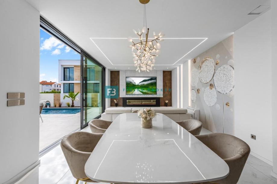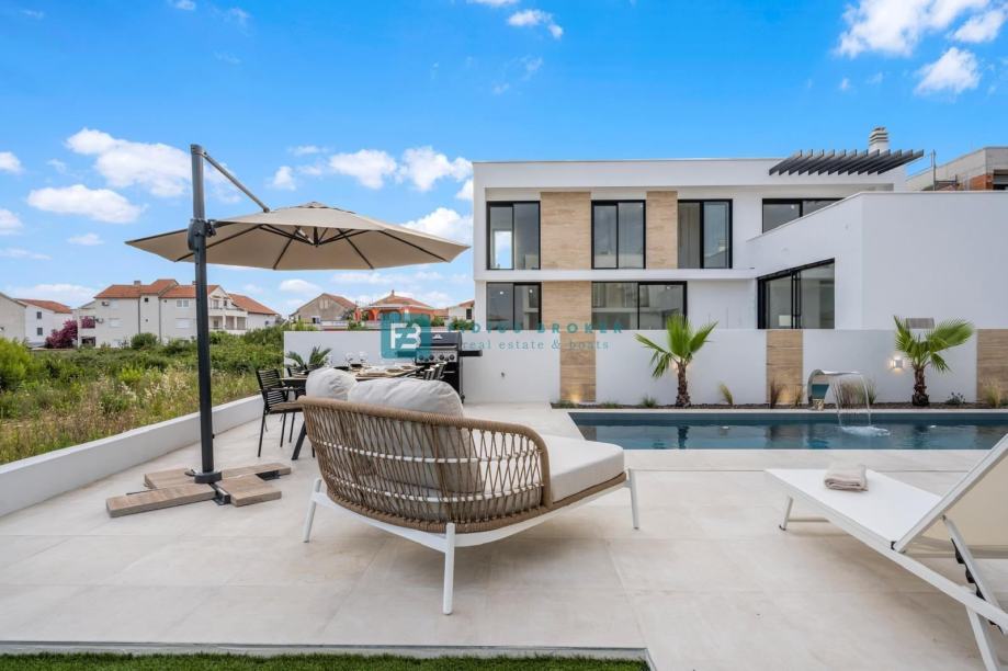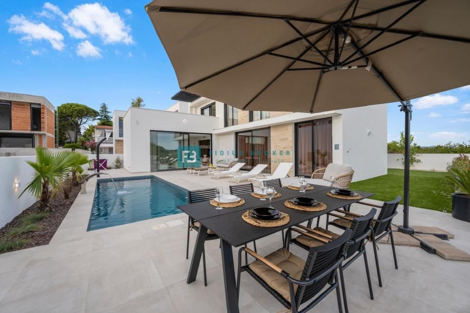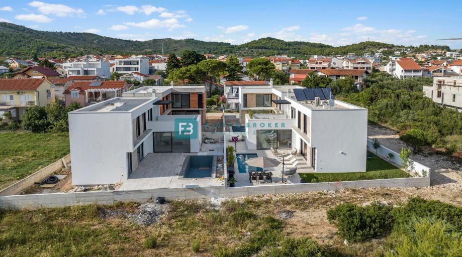 TRIBUNJ, novo, luksuzno namještena kuća, bazen, pogled na more (prodaja)