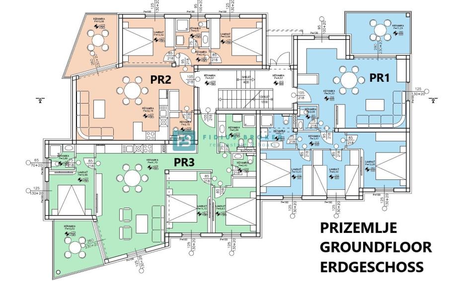Stan PR3 ukupne korisne površine 100,51 m2 smješten je u prizemlju i orijentiran je prema jugu. Stan funkcionalnog rasporeda sastoji se od predsoblja, hodnika, tri spavaće sobe, WC-a, dvije kupaonice, prostrane kuhinje s blagovaonicom, dnevnog boravka koji ima izlaz na natkrivenu terasu površine 10,02 m2 s koje se pruža pogled na more, dvorište 150 m2 i bazen površine 20 m2. Stanu pripada i spremište u suterenu zgrade te jedno vanjsko parkirno mjesto. Cijena iznosi 432.193 € (PDV uključen - kupac je oslobođen plaćanja 3% poreza na promet nekretninama).