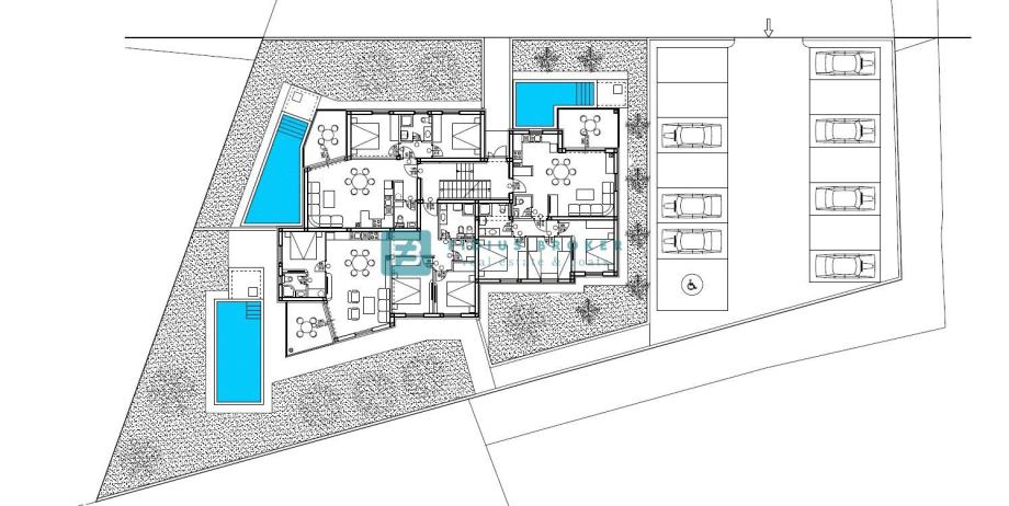 Novi projekt moderne višestambene zgrade s ukupno 9 stambenih jedinica. Stambeni objekt sastojati će se od četiri etaže: suteren + prizemlje + 1. kat + 2. kat. Zgrada se gradi kvalitetnim materijalima i biti će opremljena prema posljednjim standardima gradnje: stiropor fasada, ALU stolarija s troslojnim staklom, ALU balkonska klizna vrata, električni podizači roleta, podovi obloženi prirodnim kamenom Plano, moderne kupaonske sanitarije, klima uređaj u spavaćim sobama i dnevnom boravku, TV priključak u spavaćim sobama i dnevnom boravku, topla voda dolazi preko vlastitog solarnog panela s bojlerom zapremine 250 l, podno grijanje u svim prostorijama, staklena ograda na terasama. Svakom stanu pripada jedno vanjsko parkirno mjesto. Planirani rok završetka gradnje i useljenje - ljeto 2026. godine.