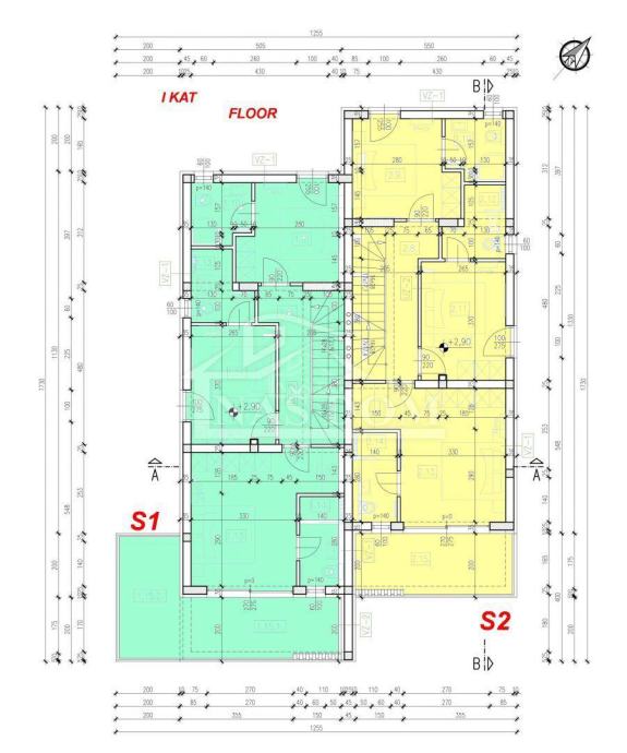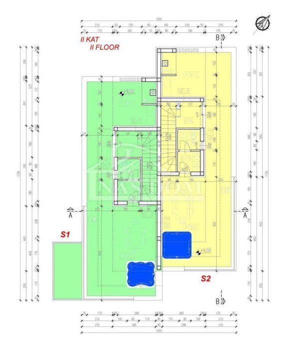 S2 kuća ima neto površinu 209,13 m2 i sastoji se od od 4 etaže: podrum +prizemlje+kat+II.kat . Prizemlje se sastoji od predsoblje,, hodnik i stubište, kupaonica, kuhinja s blagovaonicom i dnevni boravak s izlazom na natkrivenu terasu . I.kat se sastoji od hodnika, master spavaća soba s vlastitom kupaonicom i izlazom na terasu , te dvije spavaće sobe svaka s zasebnom kupaonicom. Na II etaži se nalazi krovna terasa s ljetnom kuhinjom wc. Na krovnoj terasi će biti postavljene i instalacije za jacuzzi.