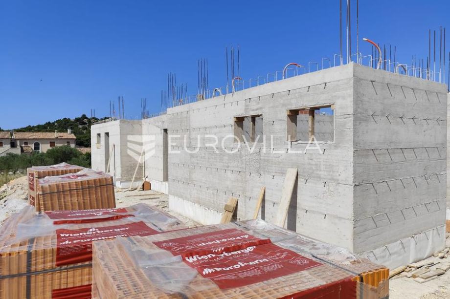 Tribunj, prekrasna dvojna kuća s pogledom na more 168,88 m². Kuća se nalazi na parceli od 200 m².Kuća se prostire na 3 etaže. Prizemlje se sastoji od dnevnog boravka s kuhinjom i blagovaonicom, WC-a i praonice. Iz dnevnog boravka izlazi se na terasu. Na prvom katu nalaze se dvije spavaće sobe, te svaka ima privatnu kupaonicu i balkon. Na drugom katu nalazi se treća spavaća soba, također s kupaonicom i balkonom, garderoba i velika terasa s mogućnošću ugradnje jacuzzija.Kuća je trenutačno u izgradnji te se gradi po najvećim standardima koristeći kvalitetnu opremu. Kupac ima mogućnost izbora pločica. U cijenu je uključena i luksuzna kuhinja po mjeri, od najekskluzivnijih materijala i okova. Mogućnost izgradnje bazena uz dodatnu naplatu, te mogućnost izrade kompletnog namještaja po mjeri.Udaljenost od mora je samo 200 metara pjesice, te 300 metara do prvih plaža.Za sve ostale informacije stojimo na raspolaganju....